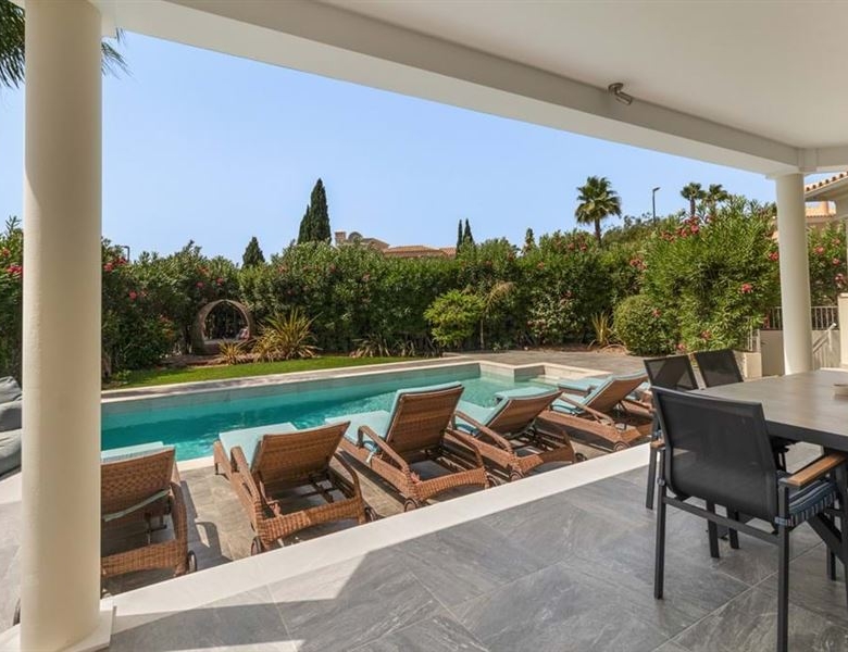 The villa’s spacious layout features brand-new, high-end bathrooms throughout, a sleek fully equipped kitchen, and expansive living spaces designed for comfort and style. The lower ground floor is a standout feature — a versatile, self-contained apartment with a private bedroom, sitting room, kitchenette, luxurious bathroom, and an impressive cinema room perfect for family entertainment or guest accommodation.