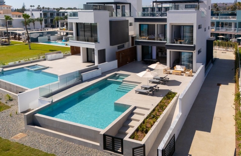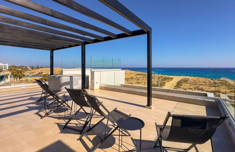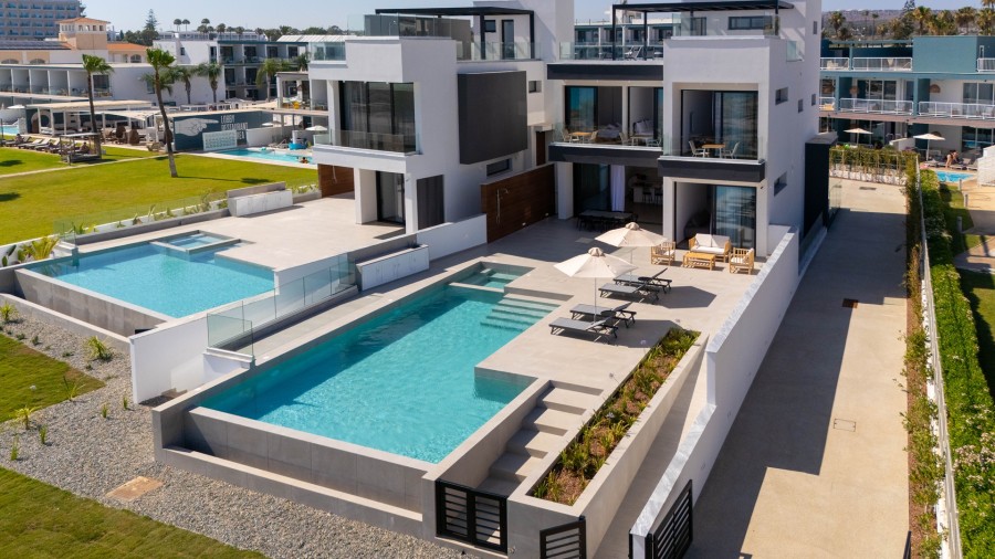 This luxurious beachfront villa project in Ayia Napa features two exquisite villas, offering unparalleled seaside living with modern elegance and breathtaking Mediterranean views. Each villa spans multiple levels, designed for comfort and sophistication. The lower floor includes a bedroom, bathroom, and storage room, while the ground floor boasts an open-plan kitchen, spacious dining and living area, guest WC, and outdoor deck with a pool and jacuzzi. The first floor offers three ensuite bedrooms, providing a private retreat for each resident. The rooftop garden is the highlight, featuring a BBQ area, jacuzzi, and an additional WC, perfect for relaxation and entertaining. With an elevator connecting all floors and parking for two cars, these villas are designed for absolute convenience and luxury. Situated in the heart of Ayia Napa’s coastal paradise, this is an exclusive opportunity to experience the best of beachfront living.