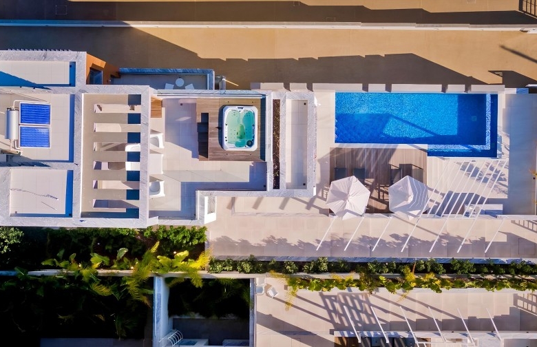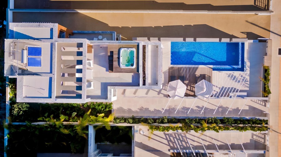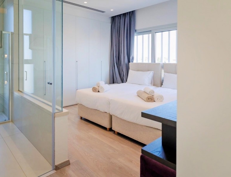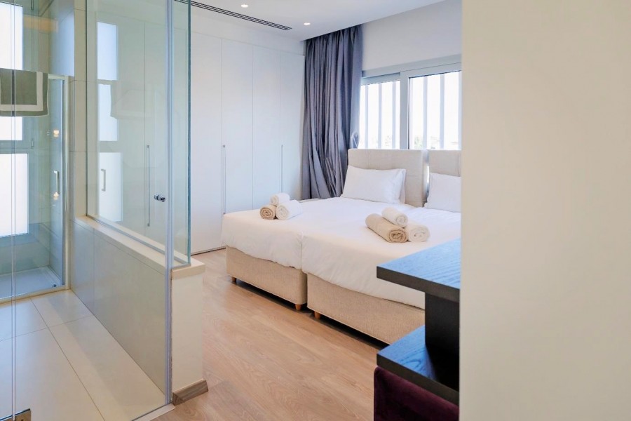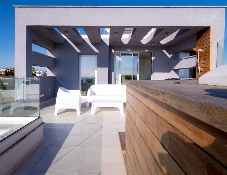 A stunning luxury villa in a prestigious area of Ayia Napa, part of an exclusive new development. Carefully positioned to offer privacy and tranquility, the villa is nestled in a prime location—secluded enough for peaceful living, yet close to all the conveniences of the vibrant resort town. Designed for a sophisticated homeowner, this elegant residence blends modern aesthetics with high-quality materials, creating a refined and durable living space. The ground floor features a spacious living area, a stylish kitchen, and a terrace with a private pool, perfect for relaxation and entertaining. The first floor hosts two ensuite bedrooms, while the second floor boasts a rooftop terrace with a jacuzzi and a third ensuite bedroom, offering breathtaking views of the surrounding landscapes. With velvety beaches on one side and serene fields on the other, this villa is an exceptional opportunity for those seeking the perfect blend of luxury, privacy, and coastal living in one of Cyprus’ most sought-after locations.