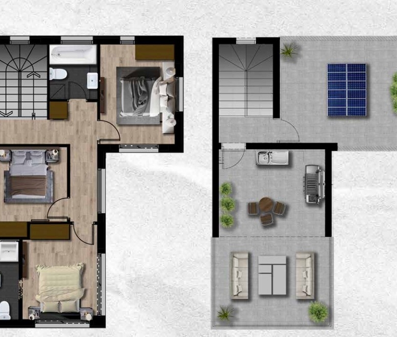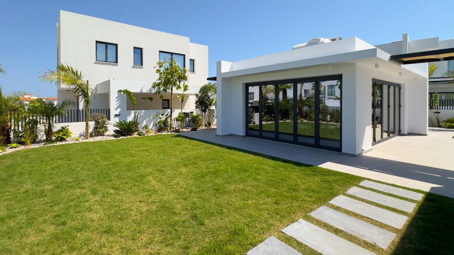 This is a project situated in the cosmopolitan seaside resort of Protaras, renowned for its award-winning beaches ranking among the best in Europe. Positioned in the popular and rapidly developing area of Pernera, and near the new Paralimni Marina, this stunning development embodies luxury. Comprising 18 opulent villas, presenting an excellent opportunity for both investment and home ownership. The residences boast clean, minimal geo metric lines, showcasing a distinctive design and elevated aesthetics evident in the natural tones of both interiors and exteriors. Each villa features a private swimming pool, garden, and a roof garden with captivating sea views. The ground-floor covered terraces seamlessly merge indoor and outdoor spaces, establishing an inviting environment to enjoy the Mediterranean climate of Cyprus all year round. There is a private Roof Garden of 34 square meters.