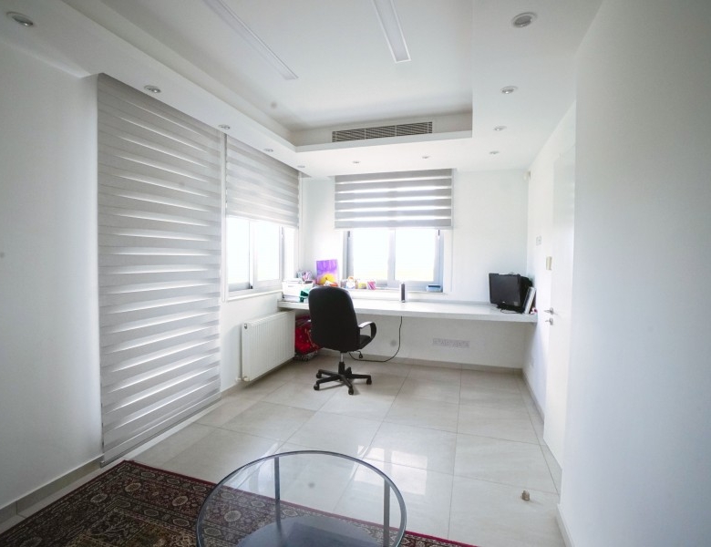The kitchen is fully equipped with top-of-the-line Miele brand appliances, with an additional kitchenette upstairs for added convenience. A separate washing room adds practicality to daily chores, while all curtain blinds are electrically operated for ease of use.