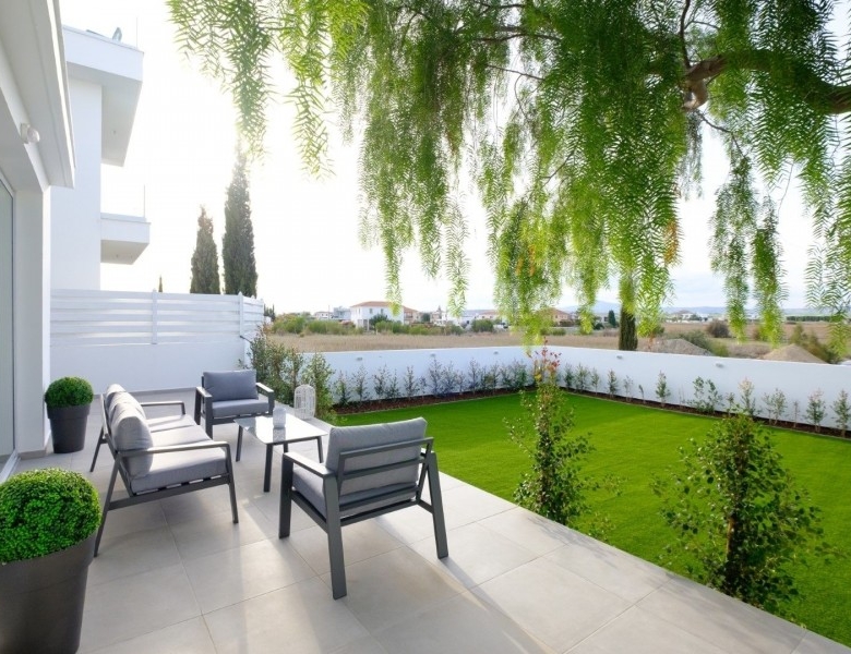 4 Bedroom Corner Detached Villa in Dromolaksia Larnaca. The villa provides the option to have a private pool, which can be a great addition for relaxation and entertainment. This is an energy-efficient feature that can help reduce utility costs. Provision for air conditioning is available, ensuring comfort in different seasons. The bedrooms are described as spacious and modern, providing a comfortable living environment. The use of neutral colors and patterns creates a calm and relaxing atmosphere. The inclusion of modern minimal furniture suggests a contemporary interior design style. Efficient use of space is emphasized, ensuring practicality. This feature offers ample storage space. Master Bedroom with En-suite Bathroom: The master bedroom includes an en-suite bathroom, providing added convenience and privacy. The project incorporates a unique combination of glass, stone, and timber materials. It emphasizes rectangular forms and horizontal and vertical lines, suggesting a modern and stylish architectural design. Large openings with glass doors lead to spacious verandas and gardens, which can be great for outdoor activities and enjoying the surroundings.