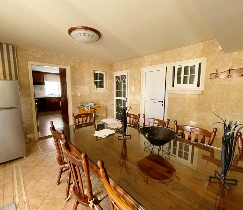 A stunning stone-built villa in an elevated area of Oroklini, offering breathtaking mountain views. This charming property features three spacious bedrooms, including a master with an en-suite, a large family bathroom upstairs, and a guest toilet on the ground floor. The expansive living and sitting areas create a warm and inviting atmosphere, complemented by a separate dining area that leads to a large, fully separated kitchen.