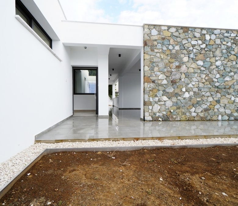 Set on a spacious 725m² plot with 195m² of covered areas, this stunning home is designed for comfort and flexibility. Both bedrooms feature private showers and WCs, with the master suite boasting a generous walk-in wardrobe. Additional options include the ability to add a pool and a second floor that includes 2 more en-suite bedrooms—bringing the total to 4 bedrooms at an additional charge. Key features include a 36m² double private covered parking space, Energy Efficiency Category A certification, a 7kWp photovoltaic system, and comprehensive thermal insulation for walls and roof. Year-round comfort is ensured with floor central heating, full air conditioning, and thermal aluminum systems by Alumil. The home also features an Italian-designed modern kitchen, a laundry room, a barbecue area, and solar panels with a pressure system.