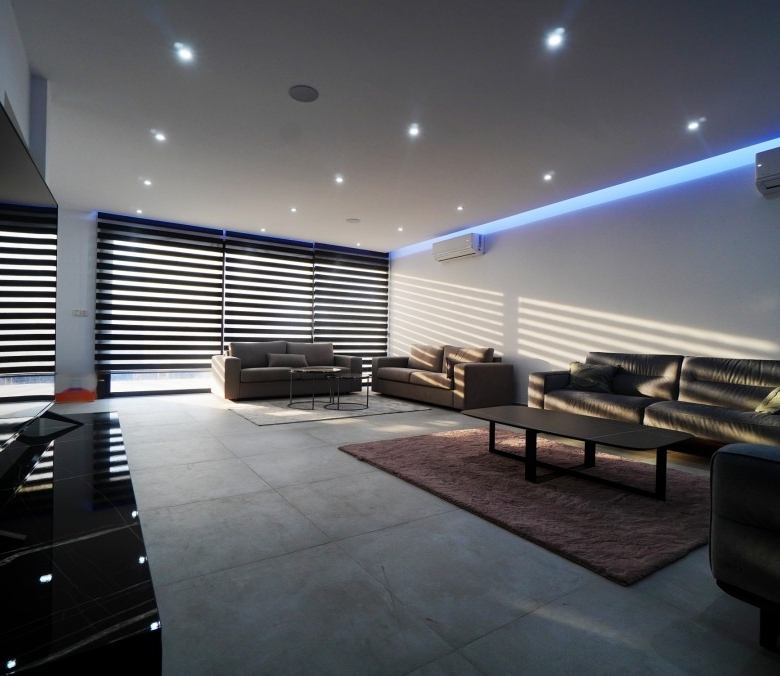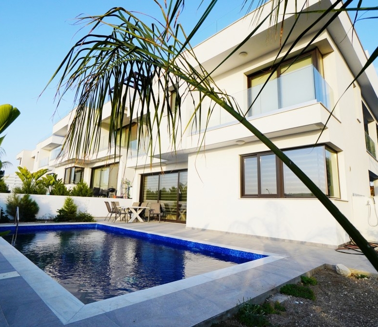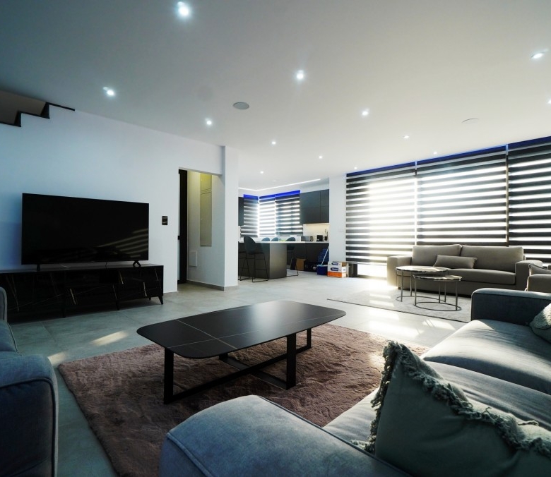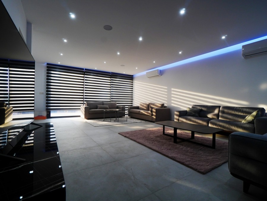 A stunning, modern smart home in the in Pyla, Larnaca, just 2 km from the beach. This newly built (2024) property boasts a 324 sqm plot with 236 sqm of covered area, featuring 4 spacious bedrooms, 3 bathrooms, and a private swimming pool. The home includes covered parking, a smart system, indoor and outdoor sound systems, and energy-efficient photovoltaic panels. Additional amenities include a water pressure system with heating and a rooftop garden offering breathtaking views of the Mediterranean Sea and Larnaca City—perfect for relaxation or entertaining.