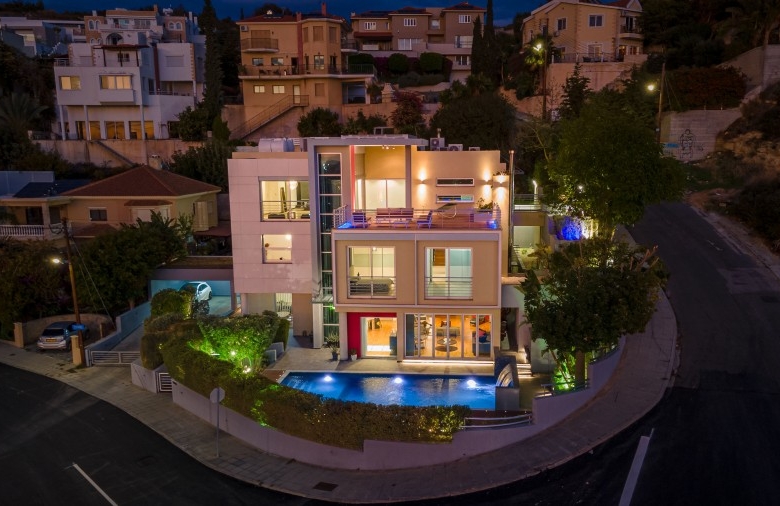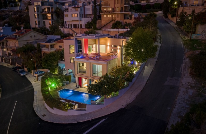 Unique modern villa situated in the prestigious area of Ayia Fyla, and standing on a generous 646m2 elevated Corner Plot, this modern villa offers breathtaking City & Sea views and a comfortable living experience. The property spans 483m² of unique internal areas, 76m2 of covered verandas, 263m2 of uncovered verandas, surrounded by 136m2 of beautifully landscaped green areas. The property spans on 3 levels including 6 bedrooms, 4 bathrooms, an aquarium, a glass tunnel elevator and a large swimming pool.