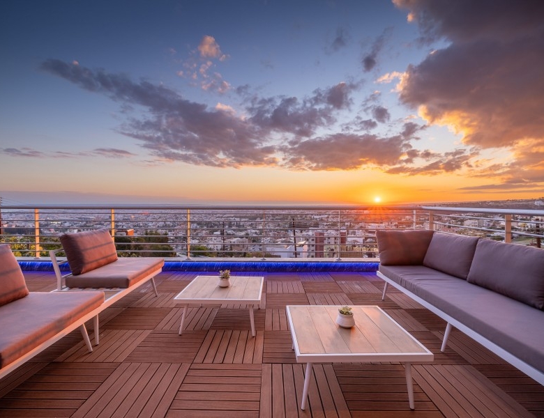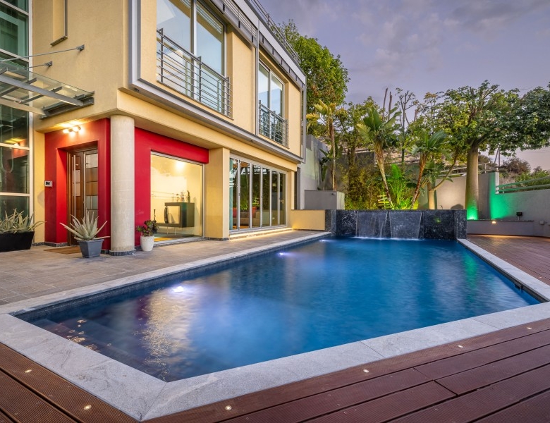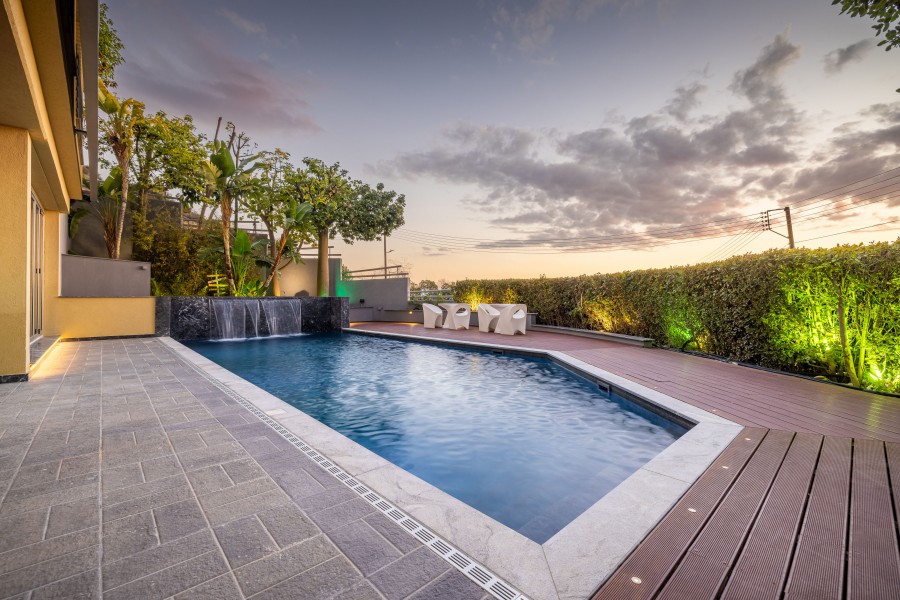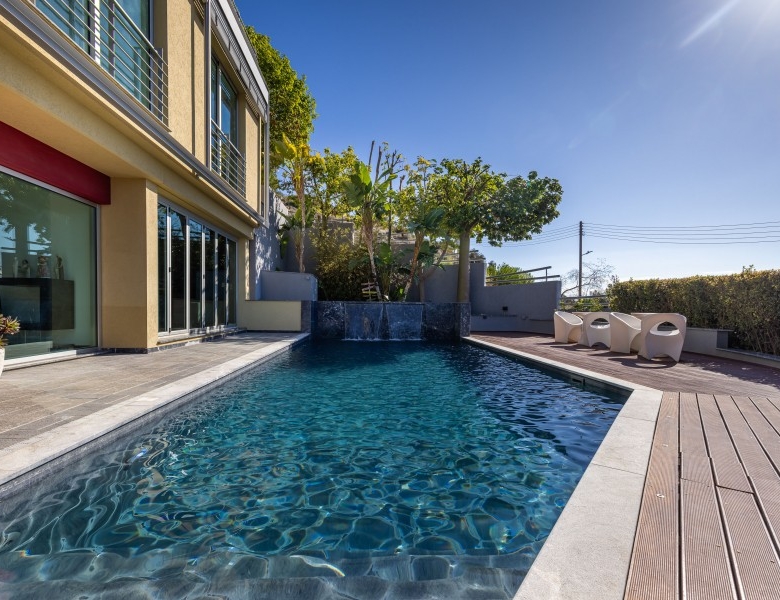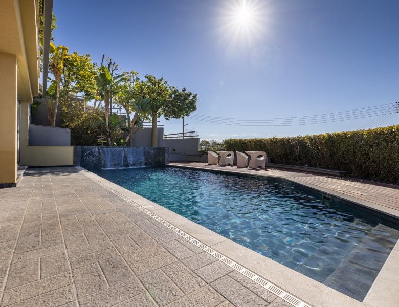 Outdoor Areas & Garden: At the frontside of the villa, you can find a large (10m x 4m) swimming pool surrounded by a deck area and a beautifully landscaped garden alongside an outdoor shower room and a separate WC. At the backside of the villa, there is a spacious corridor where the barbeque area is located. Additionally, there are 3 spacious storage rooms and 2 mechanical rooms housing all control units. The villa has an electric-gated garage for 3 cars (2 of which are covered).