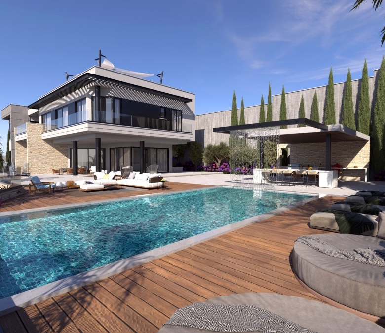 A luxurious villa project that offers a unique and individual architectural expression. With spacious, well-designed living areas and a breathtaking view of the valley, the Mediterranean Sea, and the surrounding countryside. Situated only 7 minutes from the beach and 10 minutes from the town center. With unobstructed sea views, this villa is a paradise amongst the hills of Agios Tychonas.