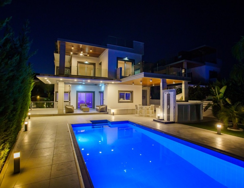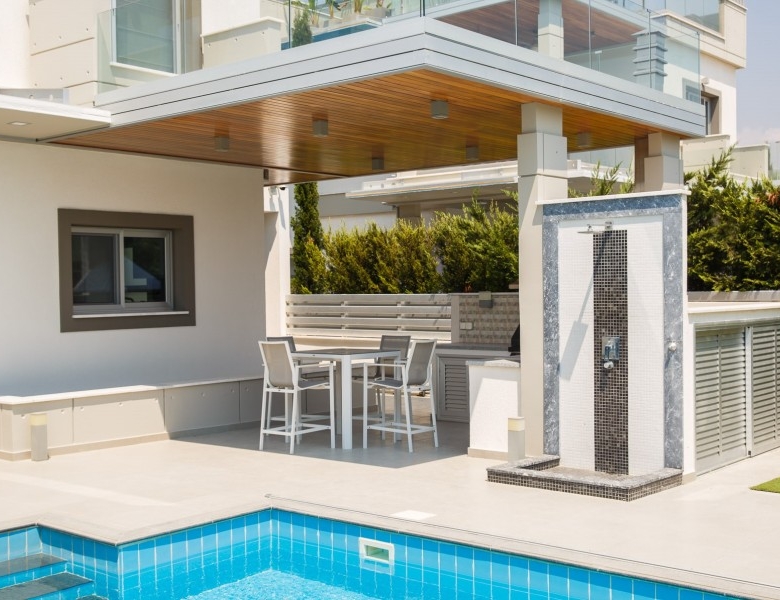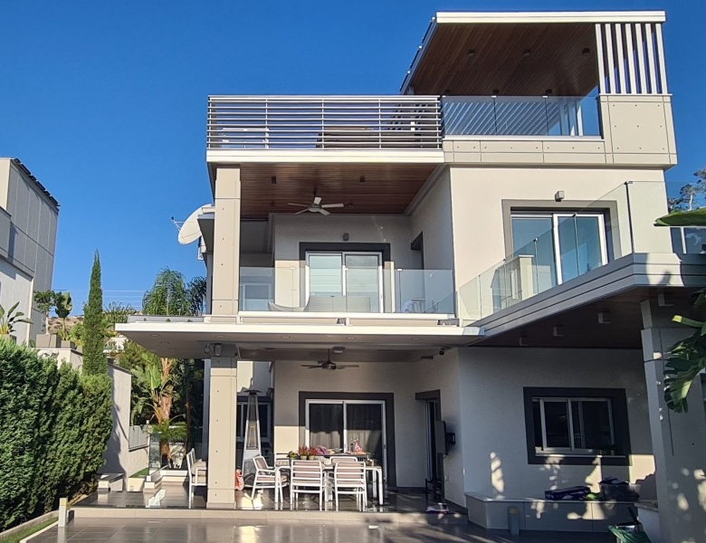 Luxury ultra-modern villa for sale in a prestigious area of Agios Tychonas , Limassol. The area is inhabited by new, large and privately owned villas with large gardens and land plots. The area and the villa guarantee the owners a number of important advantages such as a prime location, close proximity to the Marina, sea & city center. House offers a spacious garden & ample inner area for comfortable & luxury living. Being just within a few minutes of drive with easy access to all amenities this villa it’s a perfect home for a family. Matured gardens surrounding the house • Big spacious Verandas on levels and roof garden providing beautiful daily living experiences. Available immediately. Covered verandas 85 sqm roof terrace 70 sqm.