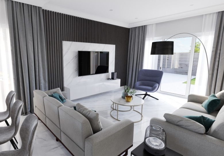 Nestled within a serene and private community of just nine modern homes, this energy-efficient Grade A residence offers the perfect blend of contemporary comfort and peaceful village living. Designed with families in mind, the neighborhood is quiet, safe, and surrounded by lush greenery, creating a calm retreat from the bustle of city life. The home features three bedrooms—including a master with ensuite bathroom—along with three WCs and two baths in total, ensuring both convenience and privacy. Its spacious, open-plan living area is filled with natural light and flows seamlessly into a private garden, ideal for relaxation or entertaining. Built with modern comforts at the forefront, the house includes double glazing, provisions for air conditioning, central heating, solar panels, and electric roller blinds, as well as a pressurized water system. A true haven that combines style, efficiency, and tranquility, ready to welcome you home.