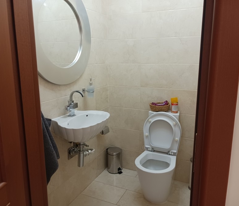 On the ground floor, you’ll find a fully-equipped kitchen with a dining area that opens onto a charming balcony, a guest bathroom, and a spacious living room ideal for entertaining.