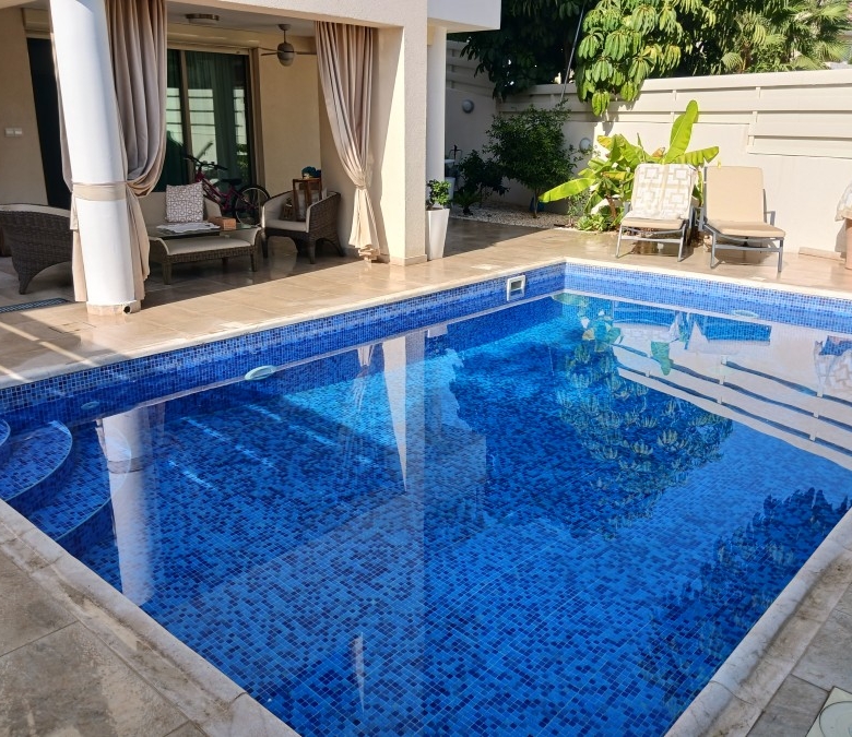 Outdoors, you’ll discover a delightful oasis featuring a sparkling pool, a beautifully landscaped garden, a barbecue area for outdoor gatherings, an automatic irrigation system to keep your garden lush, a storage room for your convenience, and ample parking space for two cars.