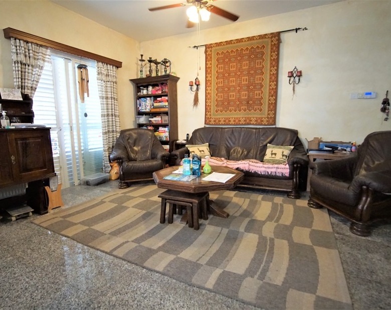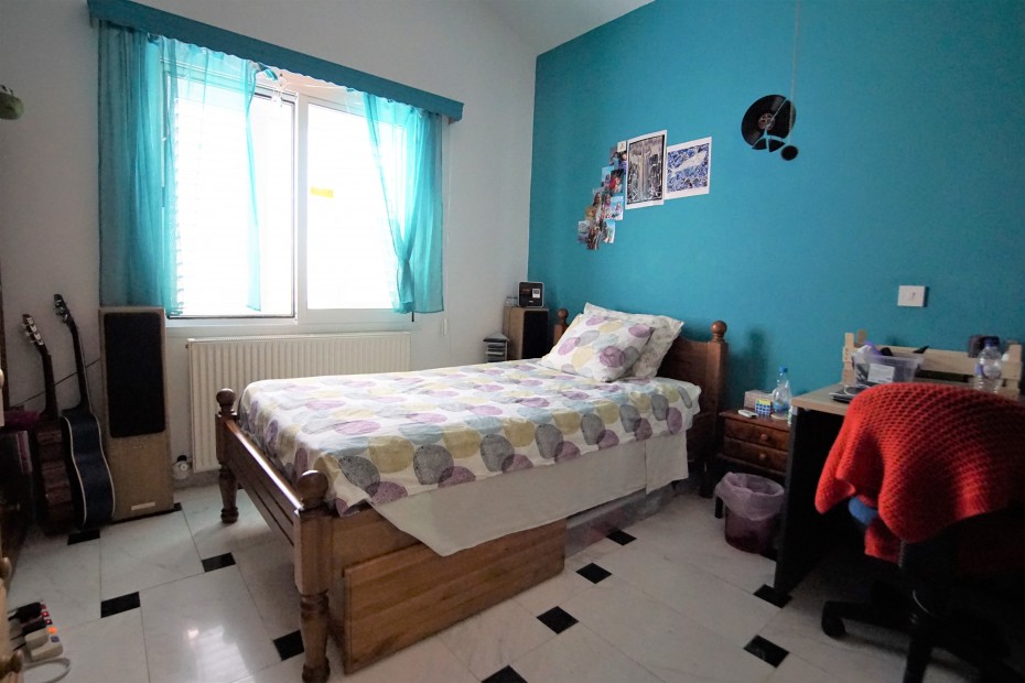 A spacious 5 bedroom detached house for sale in Agios Athanasios, Limassol. It is located in a quiet residential area not far off the highway with a community park nearby. You can find all amenities just a short drive away such as bank, school, kiosks and cafes. The house offers photovoltaic system and well water with electric pump and timer. It is split over 2 levels: ground floor offers a large office space, living room, open plan kitchen with dining and seating area, separate maids room with en suite and guest WC. The first floor has a master bedroom with en suite, 4 bedrooms, office, veranda with a view