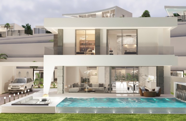 Modern villa with a swimming pool in a new project, Moni – Monagroulli district, Limassol. The project consists of 6 houses. The ground floor accommodates a spacious living room, an open-plan kitchen with high-end appliances, a dining area, two bedrooms and a guest toilet. On the second floor there are two bedrooms, each with its own dressing room and bathroom, with fantastic mountain views. High quality materials are used in construction. Air conditioning and underfloor heating in all rooms. All windows have electric sun blinds. Electric gates to the complex, video surveillance. Home alarm system. Photovoltaic panels for generating electricity. The Smart Home system.