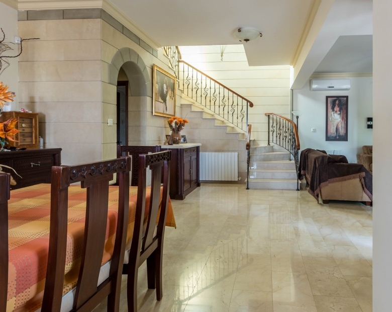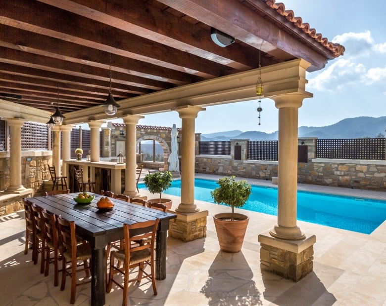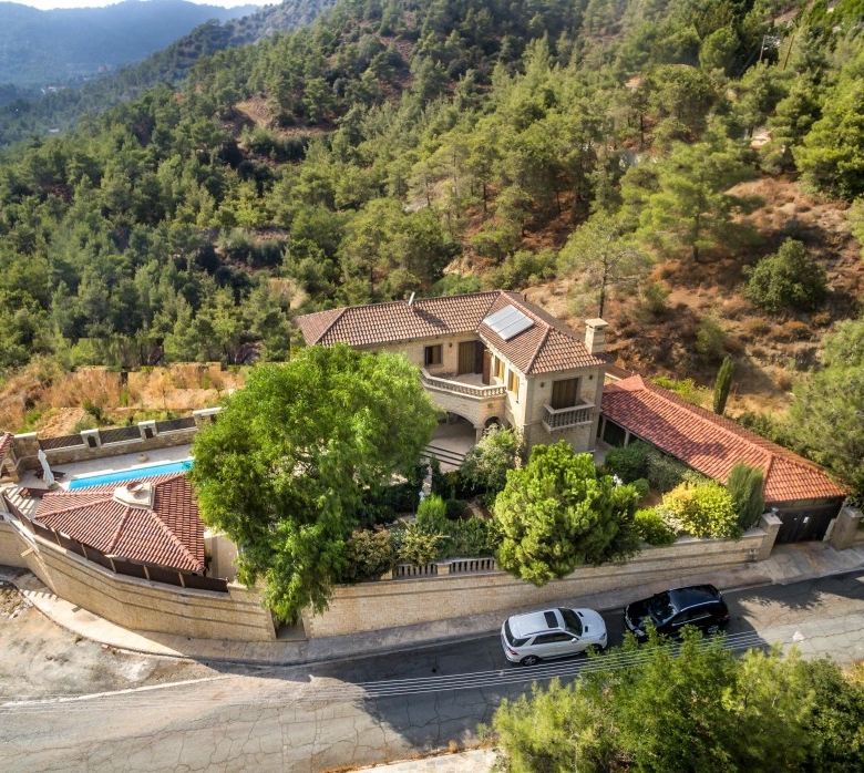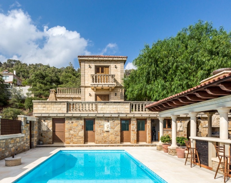 Unique & Tuscan style villa which is covered with a thick stone to impress those who appreciates to enjoy a living in outskirts of Limassol city – Moniatis village. Property offers a beautiful surrounding and quiet ambiance to completely relax and enjoy a quiet neighborhood and quality time. There are four bedrooms , 4 bathrooms , tow kitchen , storage room , living room , sitting room , tow barbecue areas , swimming pool , full furniture , full air-conditions , heating and Electrical devices . The villa is all covered with 8 cm thick of Cyprus stone which is energy efficiency , also all the others areas of villa is covered with stone and many parts are handmade.