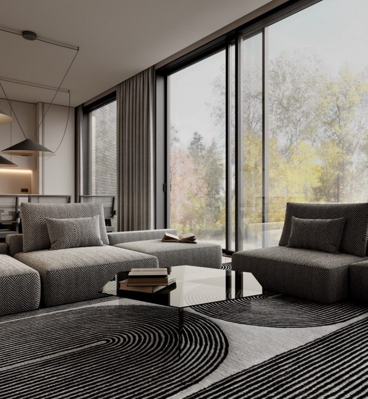 This project is located in the village of Moniatis, a destination well-known among nature lovers for its forest landscapes and fresh mountain air. It highlights the beauty of the lush natural surroundings, thoughtfully complemented by modern “barn house” style villas, all within a cozy gated community offering the amenities needed for comfortable and safe living.