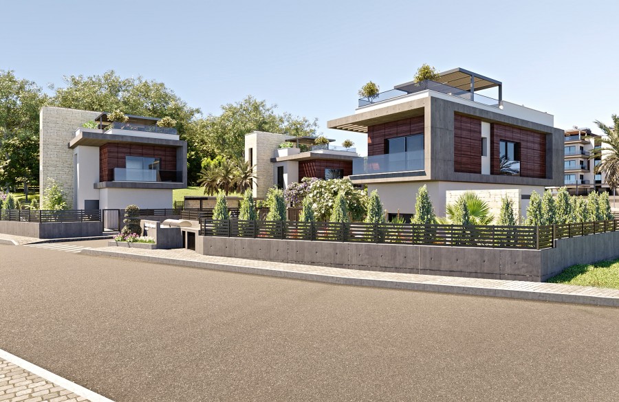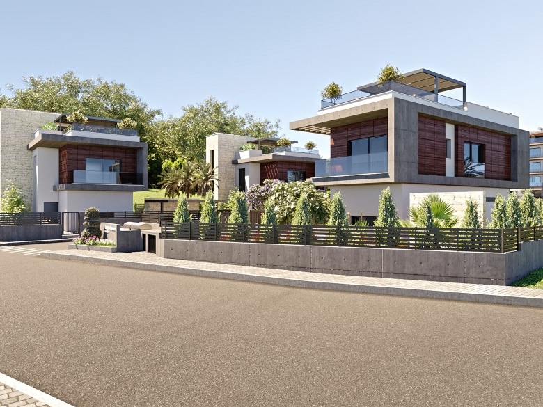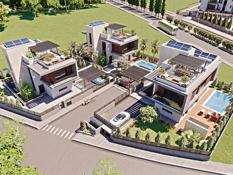 All villas are located within a gated complex, complete with a green area and a playground for children.