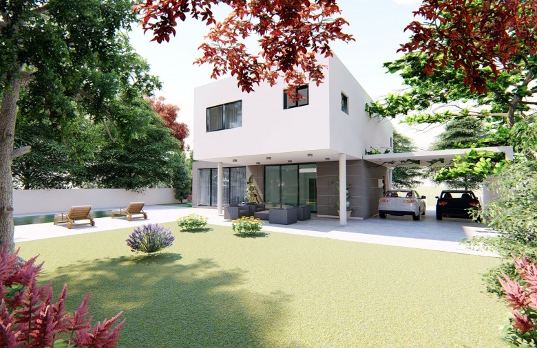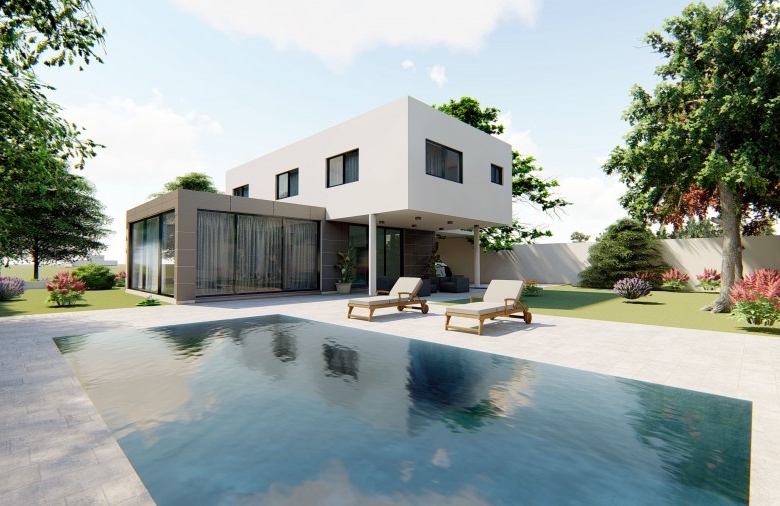 The site is located in the Palodia area, 15 minutes by car from the city center. The house will be built to high standards, offering comfort and exquisite interior spaces.