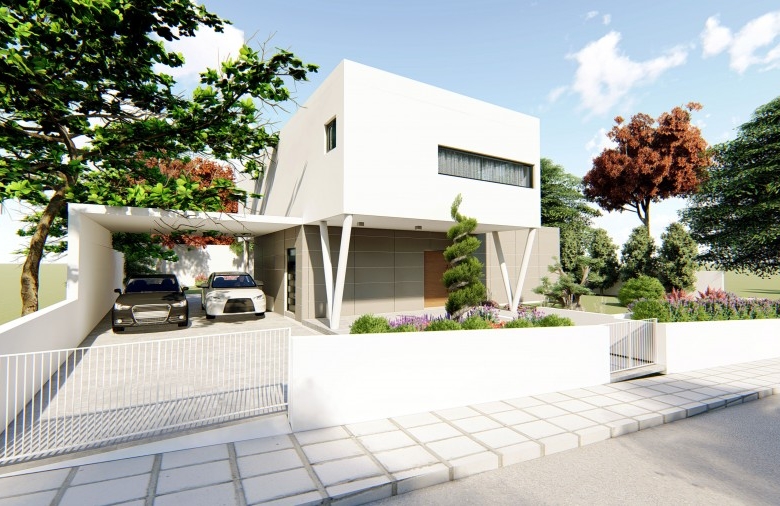 The site is located in the Palodia area, 15 minutes by car from the city center. The house will be built to high standards, offering comfort and exquisite interior spaces.