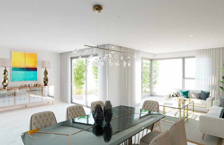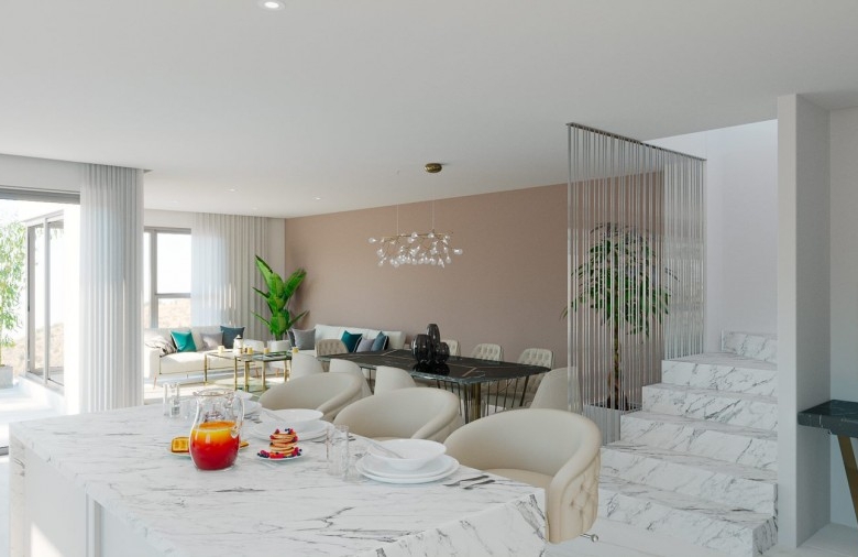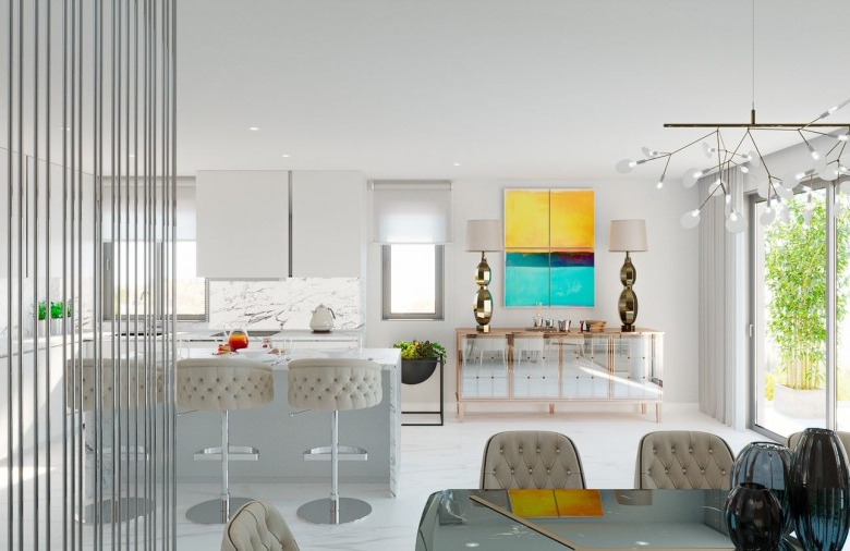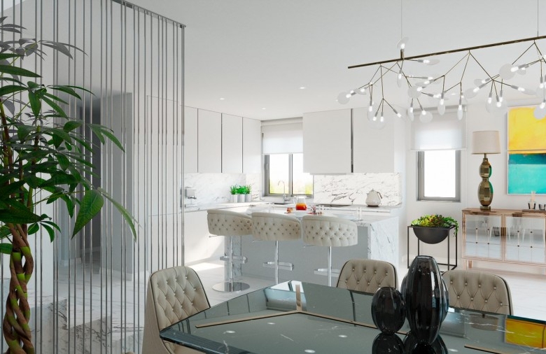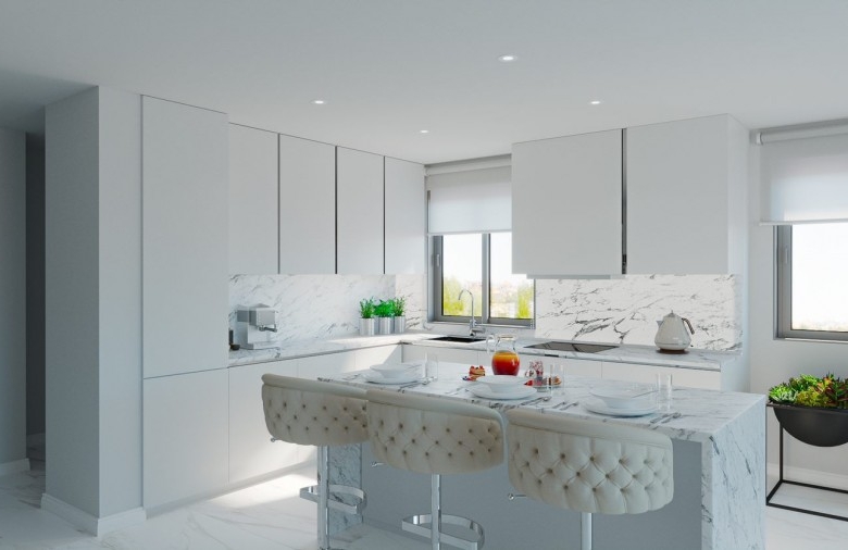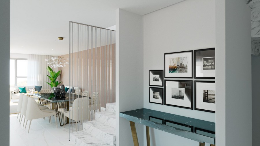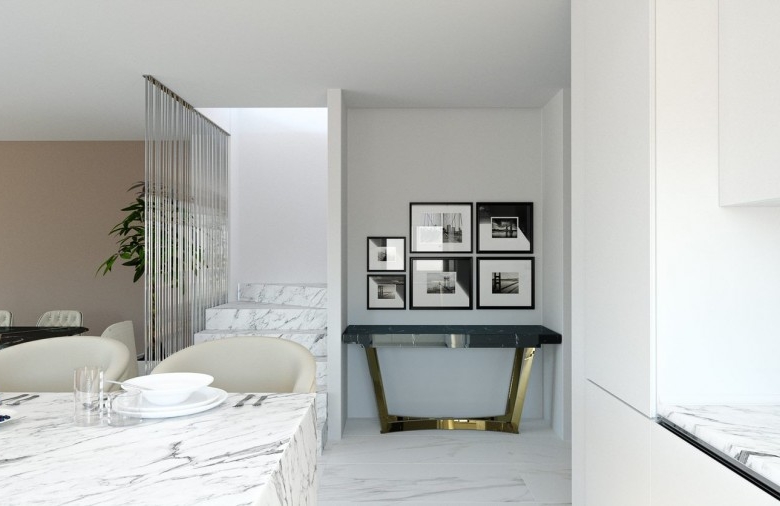 The interior of each residence is finished to the highest quality standards. A successful blend of materials, from modern concrete cladding to wood elements and brick featured walls, an elegant pairing of traditional materials and contemporary artistry with luxurious, robust materials is created. Unique tiles, gleaming marble floors and countertops, aluminum or glass balconies, stainless steel fittings, and high-quality fittings throughout enhance the feel of modern luxury.