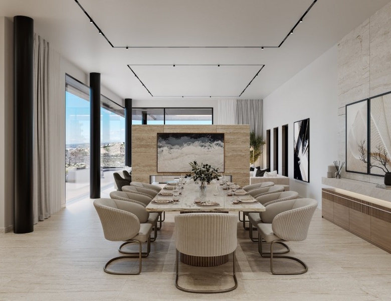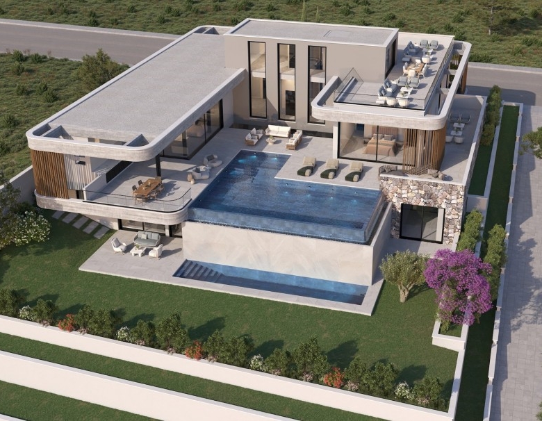 Luxurious 4-bedroom 5-bathroom villa sits on a generously sized plot of 1622 meters with fascinating views of the mountains. It is set in a very quiet neighborhood which consists of modern luxury villas and nature in the prestigious suburb of Limasso, just 10 minutes away from the city and 15 minutes from a selection of beautiful beaches. The villa includes 3 floors connected by an elegant staircase and a lift. The lower floor includes many features and consists of a maid’s room, 3 car parking spaces, an office with access to the garden, a pet spa, a home cinema, a cellar, a lounge area, a sauna, and a gym with access to the garden and swimming pool. The open-plan ground floor consists of a modern, spacious living room, dining area, kitchen, kitchenette, guest toilet, and 3 grand bedrooms with an en-suite bathroom. The upper floor consists of a large bedroom and access to the roof garden, which is the perfect place to enjoy the most spectacular mountain view and sea view.
