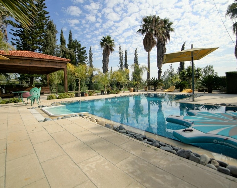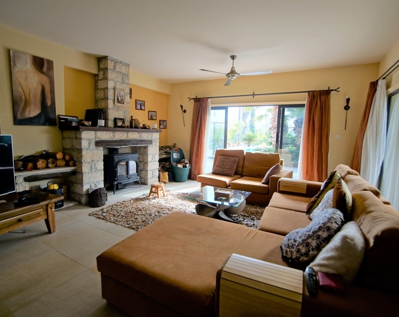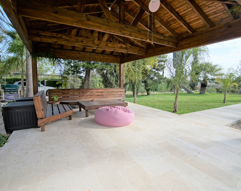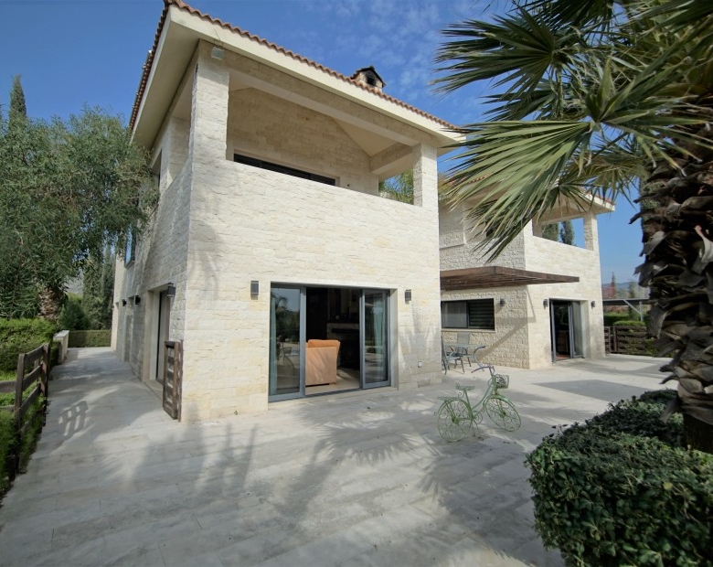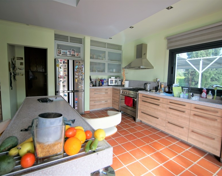 A bright 5 bedroom detached villa for sale in Pareklissia, Limassol. It is located in a quiet neighborhood just 7 minutes drive to the nearest beach and 15 minutes to the city center with all amenities nearby. There is an electric gate upon entering with driveway. The villa is split over 2 levels with its own private swimming pool and huge gardens on a 5000sqm plot. The ground level has a spacious entrance with massive windows allowing you to enjoy the outdoor views and natural light to come in. There is a separate kitchen with utility room, living/dining area with fireplace, 2 bedrooms with en-suite (1 is being used for office) and guest WC. Upstairs there are another 3 bedrooms with master en-suite and walk in wardrobe with family bathroom including the jacuzzi which overlooks the mountain views. The 2 bedrooms have an attic space which can be used as storage or another extra living space.