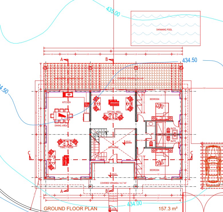 The plot is 750 m2 and the total covered area of the house is 274 m2.