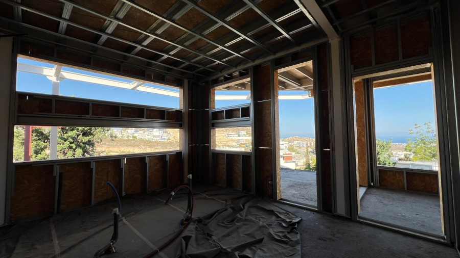 Located in the scenic hillside suburb of Germasogeia, Limassol, in the prestigious Agia Paraskevi area, this partially completed villa combines luxurious design with family-oriented comfort. Offering panoramic, unobstructed sea views, the property allows the future owner to tailor the final finishes, including room sizes and layout, to personal taste. Spanning a 1,104 m² plot with 520 m² of interior space, the villa includes a basement with storage rooms, a three-car garage, maid’s quarters, spa and gym facilities, sauna, and workshop; a ground floor with expansive living and dining areas, kitchen, laundry area, two guest W.C.s, and five ensuite bedrooms with walk-in wardrobes; and a first floor with a private office suite and a 250 m² roof deck featuring a bar and lounge overlooking Limassol and the Mediterranean. Additional highlights include two swimming pools, an elevator, BBQ area, 14 m² of balconies, 58 m² of semi-covered veranda, and a 25 m² M&E area.