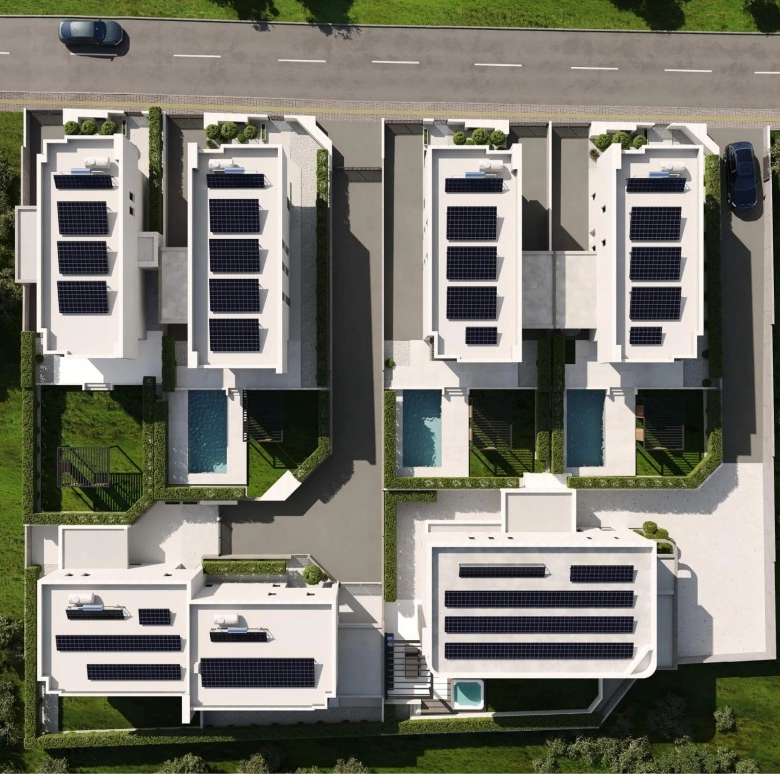 Each house boasts spacious indoor living areas with open-plan layouts, private gardens for outdoor enjoyment, and high-quality finishes that showcase careful attention to detail. Equipped with photovoltaic systems and smart home technology, these residences are built to deliver both energy efficiency and convenience.