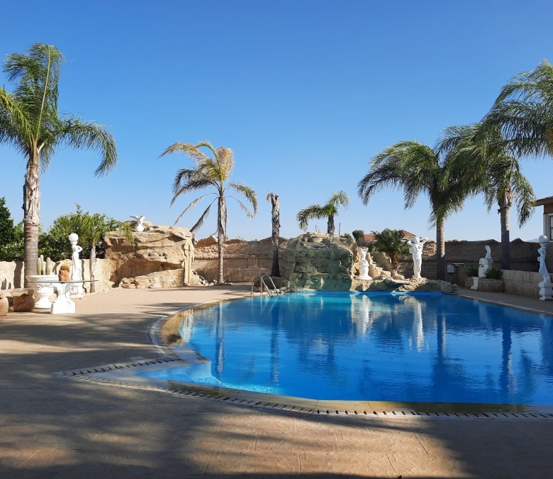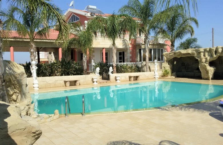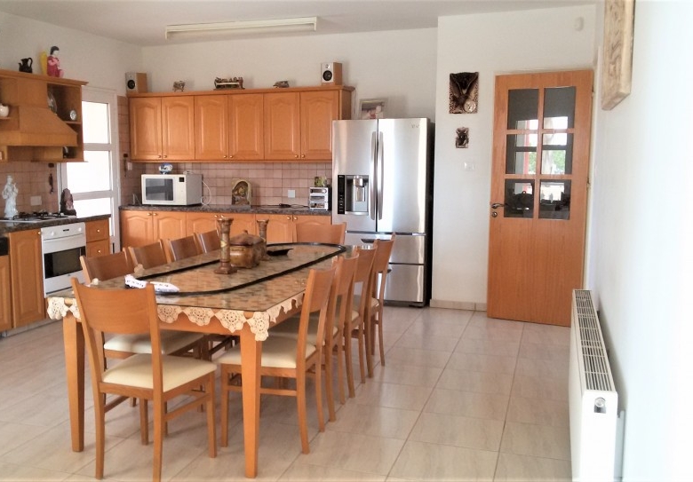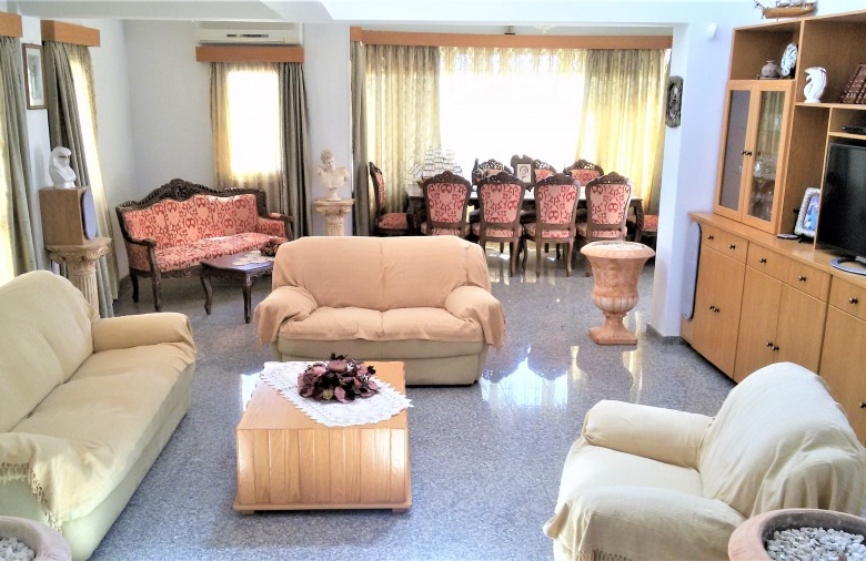 A 4 bedroom villa for sale in Palaiometocho, Nicosia. It has open-plan living rooms, two kitchen. Central heating in all the house. House offers 2 covered parking, covered terrace with barbecue area, a private swimming pool and wonderful garden along with a big landscaped area. Fully equipped with air conditioning system. Quiet residential area with panoramic mountain views. Title deeds available.