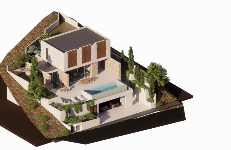 Nestled on a generous 532 square meter plot, this three-bedroom masterpiece exudes style, comfort, and modern intelligence. Boasting an expansive covered internal area of 181.95 square meters, this villa seamlessly connects living spaces to provide an open and airy environment. It’s designed to accommodate your every need. This villa features three modern bathrooms and an additional guest toilet. Distinguished by the use of high-quality materials, it’s a testament to sophistication. Fairface concrete, stone walls, and wood cladding are employed to create a captivating aesthetic, ensuring a unique character. Adding a contemporary touch, the villa is equipped with smart house technology, offering unparalleled convenience and security. Control your home’s features effortlessly, enhancing your everyday life. Step outdoors to your private overflow swimming pool, a tranquil retreat for relaxation and entertainment. The villa’s expansive plot allows for a barbecue area, perfect for hosting gatherings and outdoor dining. Parking is a breeze with two covered parking spaces, providing ample room for your vehicles. This villa is more than just a home; it’s a statement of elegance and contemporary living. Don’t let this opportunity pass you by.