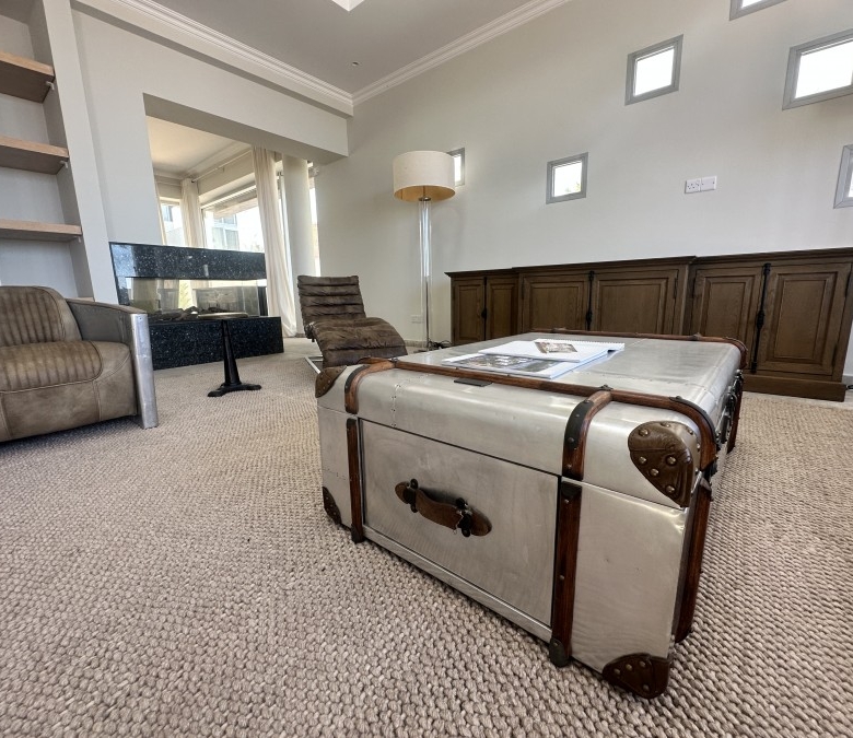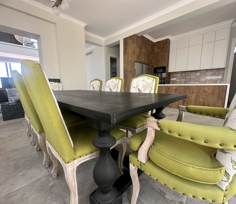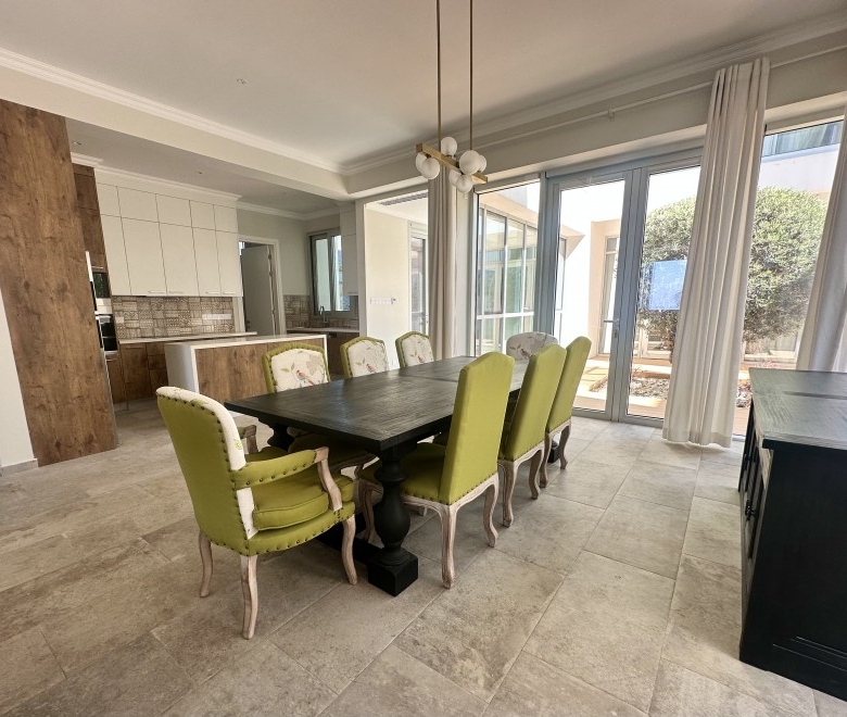 In total, the villa has 5 bedrooms, including 2 bedrooms on the ground floor and 3 bedrooms on the first floor. There are 3 bathrooms and a guest toilet. There is an extensive open living/dining area connected to a modern open kitchen. The property has two storage rooms, a laundry room, and there are many windows throughout the house, which makes it very bright and at the same time unique in its design and structure. It is fully air-conditioned and furnished. The property is equipped with a burglar alarm as well as a fire alarm.