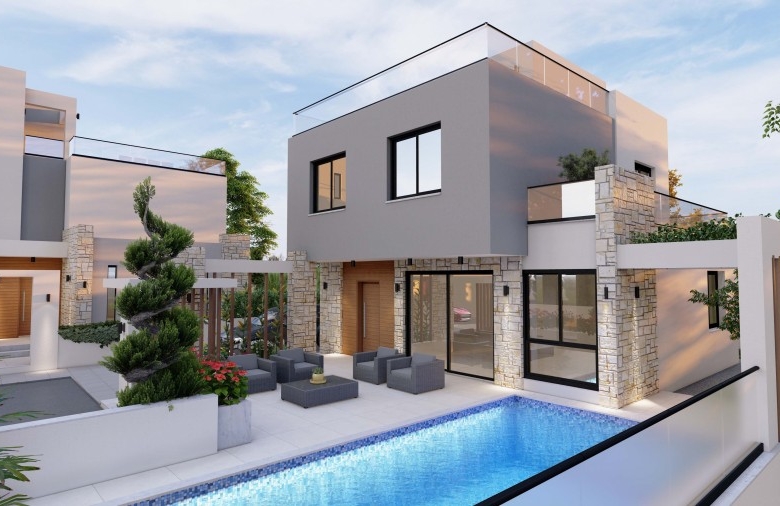 Spectacular villa with 5 bedrooms plus 1 room on the Roof Terrace, 4 bathrooms and a swimming pool in a quiet area, Chloraka.