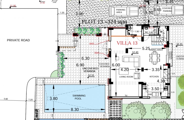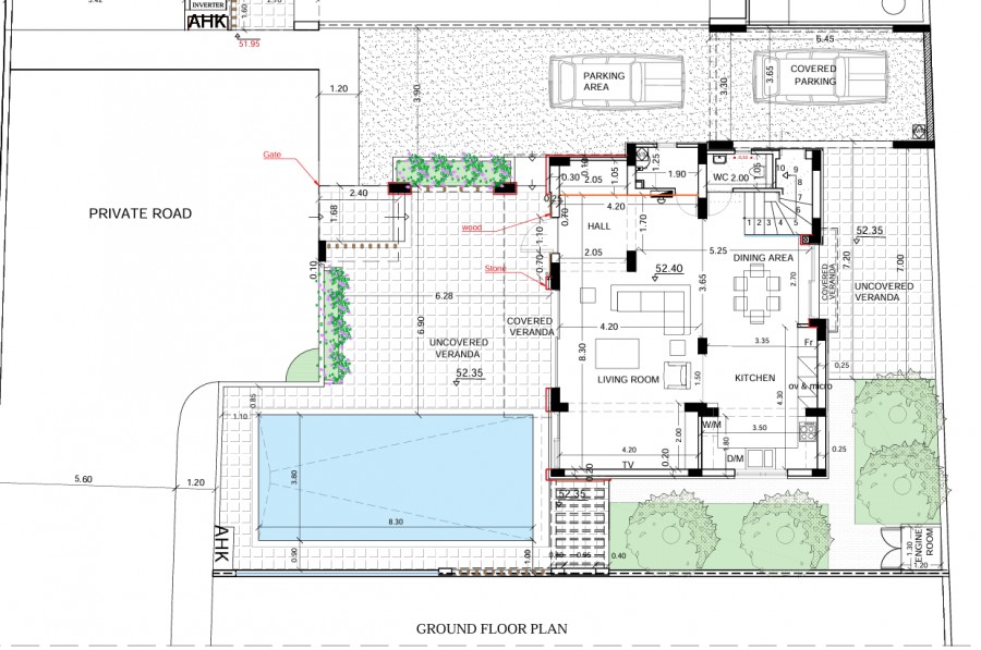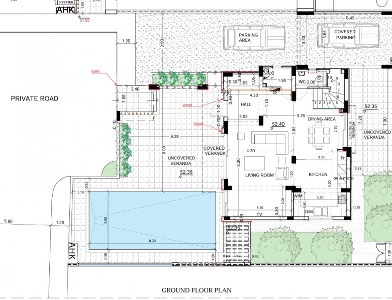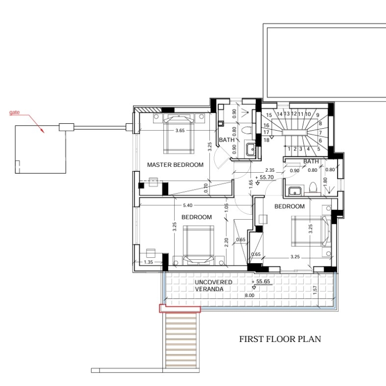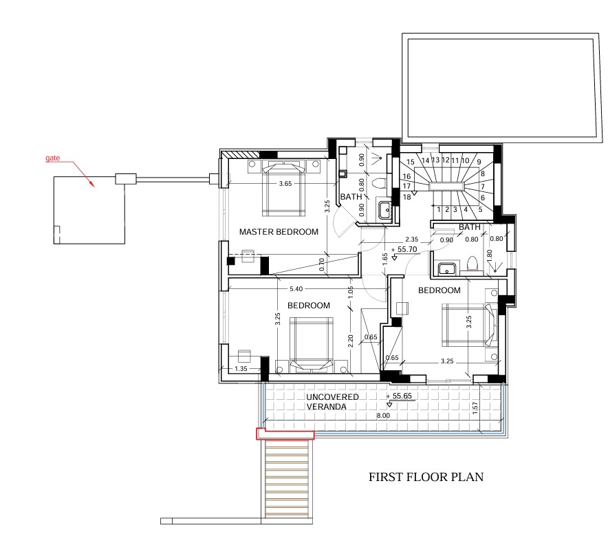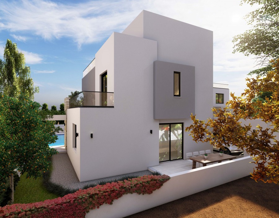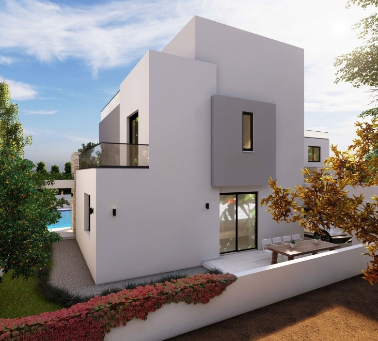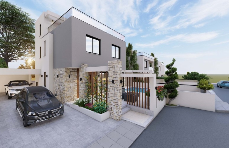 Entering the house you find a gorgeous open-plan setup, hosting a spacious living room that’s near the beautiful U-shaped kitchen with quartz counters with the dining area right next to it, worth mentioning is that the kitchen, living room and dining area enjoy big windows that bring in lots of light and offer outside views . Moving on to the staircase you find a neatly placed toilet room beneath it that serves the ground floor. Finally reaching the 1st floor you find all 3 bedrooms, with the master bedroom enjoying its own en-suite bathroom with another communal bathroom that serves the rest of the bedrooms. The villa features high quality specifications and finishes such as exterior natural stone cladding, marble staircase, quartz kitchen counters, aluminum & glass railings and much more. Roof garden terrace area of 49 square meters.