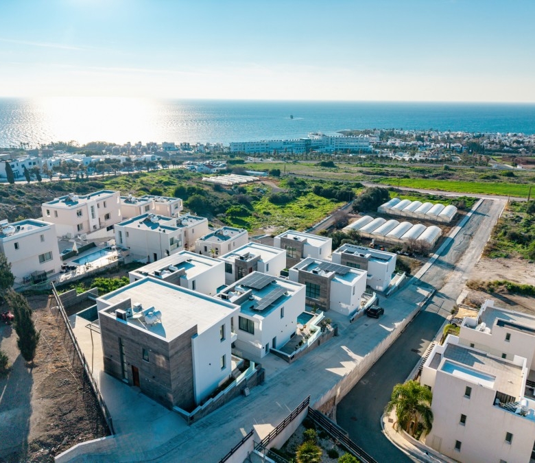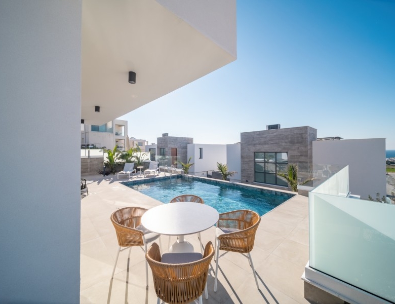 This beautifully presented, detached villa offers 152.70 m² of stylish and comfortable living space. Thoughtfully designed, it features three spacious bedrooms, two elegant bathrooms, and an additional guest W/C on the ground floor. The home is fully furnished to a high standard, making it completely move-in ready for its new owners. Situated in the highly desirable area of Chloraka, this villa enjoys a peaceful setting just moments from local amenities including shops, cafes, and schools. Chloraka is renowned for its charming village atmosphere, friendly community, and elevated position that allows for panoramic views and a refreshing sea breeze year-round. Designed for year-round comfort, the property includes a central air conditioning system and underfloor heating throughout. Step outside to a private swimming pool and spacious terraces, ideal for relaxing or entertaining while soaking in the stunning sea and countryside views. The villa also boasts a 7KW photovoltaic system and holds the highest energy efficiency rating (A) a perfect blend of luxury, sustainability, and low running costs.