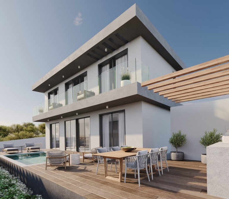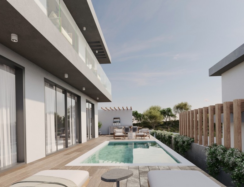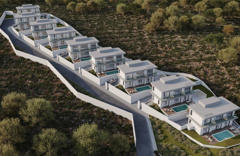 This is a stunning collection of 9 luxurious villas nestled among the picturesque rolling hills of Episkopi in Paphos, Cyprus. This beautiful mountainous region is known for its lush almond and olive trees, and the tranquil surroundings offer a peaceful and serene environment for residents. Each villa has been designed with the utmost attention to detail and built to the highest standards of quality. The spacious interiors are flooded with natural light, providing a warm and welcoming atmosphere. The villas feature VRV systems for efficient heating and cooling, and underfloor heating, ensuring your comfort year-round.