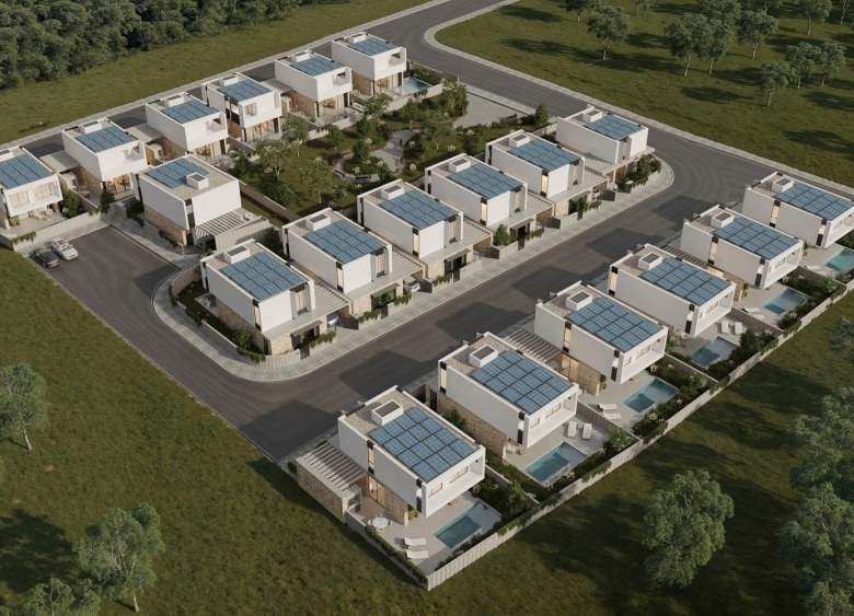 Boutique collection of 19 three-bedroom luxury villas in Geroskipou, crafted for modern comfort and style. Each home features sleek open-plan living beneath 3.10 m high ceilings, with floor-to-ceiling glass doors flooding interiors with light. Premium amenities include underfloor heating zoned per floor, a VRV cooling system, full thermal insulation, and a photovoltaic system everything is included in the price. Optional private pools, expand outdoor living, while security systems, a water filtration setup, and walk-in showers elevate daily convenience. Outside, two-car parking with electric gates and a built-in BBQ area complete the picture. Project delivers contemporary elegance and efficiency in one of Cyprus’s most sought-after neighborhoods.