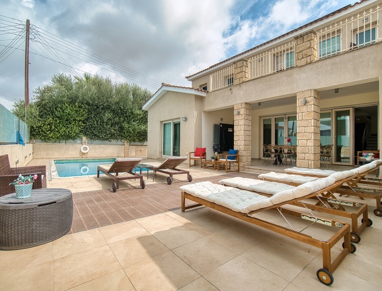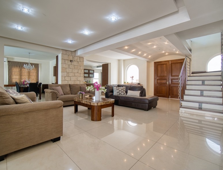 Luxurious villa in Kato Paphos, Cyprus. The villa boasts six bedrooms and five bathrooms, making it spacious and ideal for large families. Its prime location in the Universal area puts it within a convenient distance of various amenities such as hotels, the harbor, a mall, and Paphos town, all reachable within a short 5-minute drive. Despite its proximity to these amenities, the villa enjoys a peaceful atmosphere in a quiet neighborhood, offering the best location. The property comes fully furnished, ensuring comfort and convenience for its occupants. Additionally, it features modern amenities such as a private swimming pool, voltaic systems for energy efficiency, security cameras, and an alarm system for added safety. Car owners will appreciate the garage space available for 3 to 4 cars, along with two storage areas for added convenience. The presence of a fireplace adds a cozy touch, while full air-conditioning throughout the villa ensures comfort regardless of the season. Overall, this villa seems like an ideal retreat for those seeking luxury, convenience, and tranquility in the beautiful surroundings of Kato Paphos.