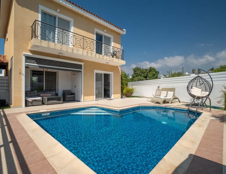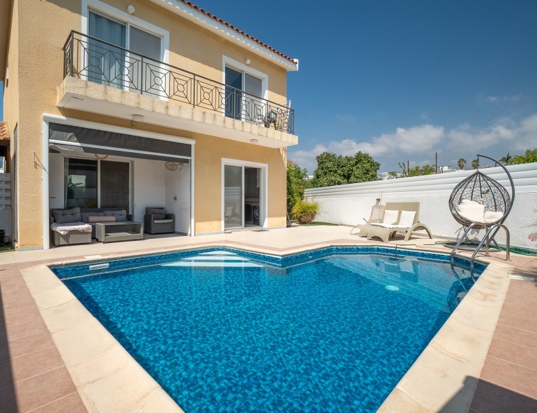 A beautiful 3-bedroom villa located in the popular village of Kissonerga, just a short drive from Coral Bay and Paphos town. This spacious property is offered unfurnished, giving the new owner the opportunity to create their own style and comfort. The villa features an open-plan living and dining area, 3 well-sized bedrooms, a modern kitchen space, and private parking. Outside, a private swimming pool with sun terrace and covered verandas provide the perfect setting for relaxation and outdoor entertaining. Situated in a peaceful residential area close to all amenities, this home is an excellent choice for families, holiday use, or as an investment.