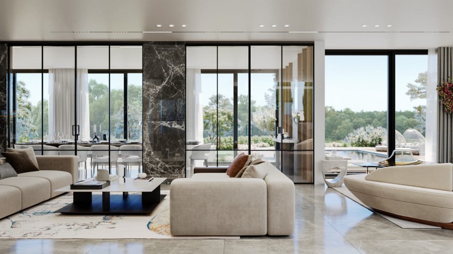 Luxurious 5-bedroom villa located in one of the most beautiful, exclusive areas in Paphos. Surrounded by nature and rural scenery, along with landscaped community sidewalks and gardens. Located within a stunning golf community that offers all the necessities to all its residents, including activities, a clubhouse, and many more. Amazing views of the sea and the mountain, just a 10-minute drive to the airport.