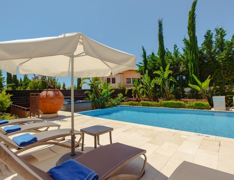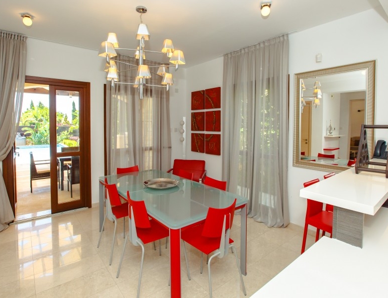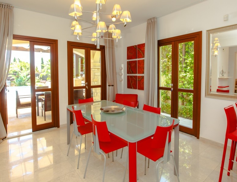 A lovely 3 bedroom family villa with a huge swimming pool, with spacious interiors and fabulous west facing gardens and terraces overlooking the Secret Valley Golf Course. The property is entered from the allocated parking area via a short footpath leading to a hardwood front door which opens into the bright hall area. Once in the hall there is access to the main living areas and doors to a guest cloakroom with a window to the front. The sitting room has a spectacular picture window with views across the valley.