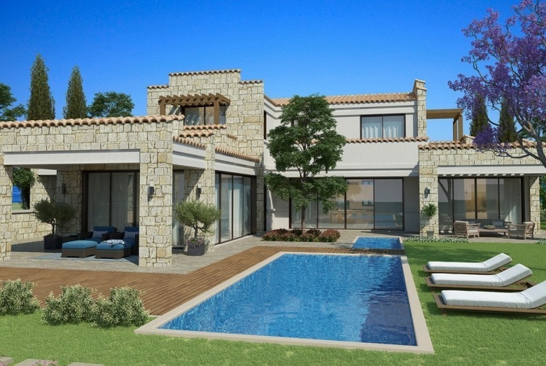 An exclusive 3-bedroom villa for sale located in a very well sought-after area just outside Paphos. The design of the villa has been inspired by a perfect fusion of contemporary and Mediterranean architecture, using traditional materials such as stone, clay roof tiles, and wood in clean lines and large open spaces. The villa is designed on a large plot and enjoys a private swimming pool, spacious interiors, and large terraces while having beautiful sea views of the Mediterranean.