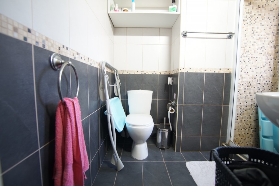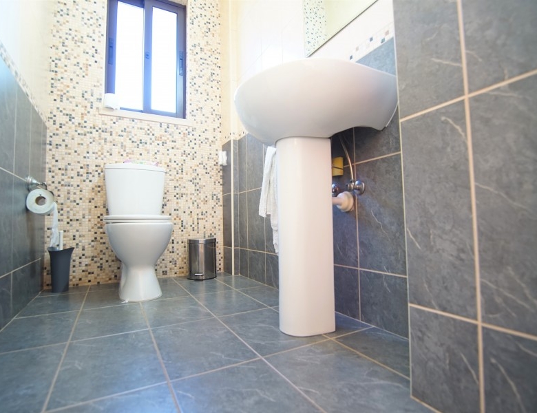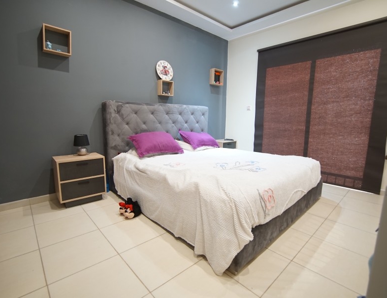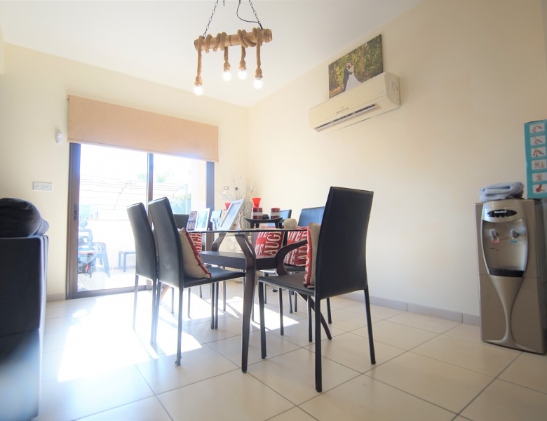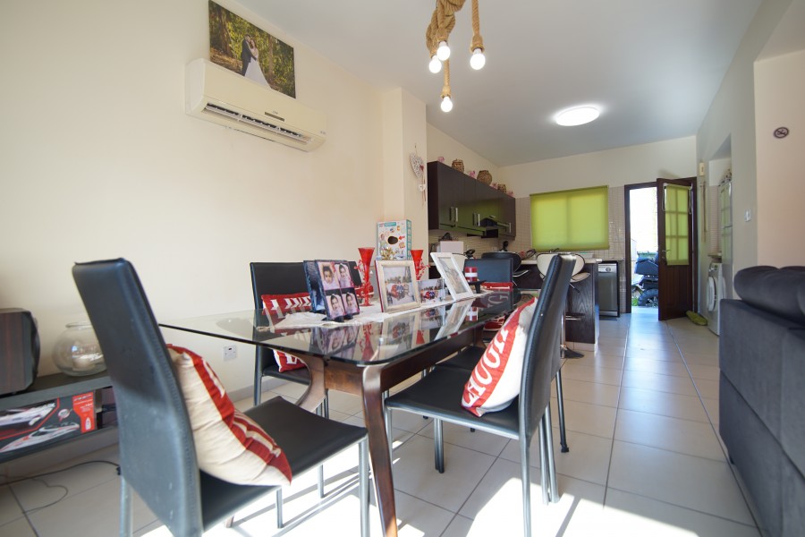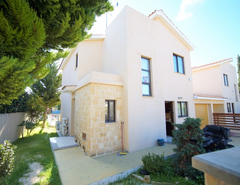 This cozy 3 bedroom, 2 bathroom villa is located in a quiet area in the Venus Rock Resort, also known as the Secret Valley. Entrance to the property through the front door leads directly into the spacious, bright, and airy dining and living area which has two sets of patio doors leading out to the terrace. There are air conditioners on the walls. Through the living room, you can enter the immaculate, spacious kitchen, equipped with modern appliances, large work surfaces, and storage cabinets. The patio door leads to the rear garden. There is also a guest toilet on this level. On the first floor are three good-sized bedrooms with floor-to-ceiling wardrobes, and air conditioning. Each of the bedrooms has its own balcony. The master bedroom has an en-suite bathroom with a shower, washbasin, and toilet, while the family bathroom serves the two guest bedrooms. The hotel has a lovely 8m x 4m tiled swimming pool and plenty of space for sunbathing and al fresco dining. This is a superb property in a very quiet location, ideal for a permanent or holiday home. Venus Rock is a popular residential area nestled in the hills above the Secret Valley golf course, a ten-minute drive from Paphos International Airport. The resort is close to the highway connecting Paphos and Limassol.