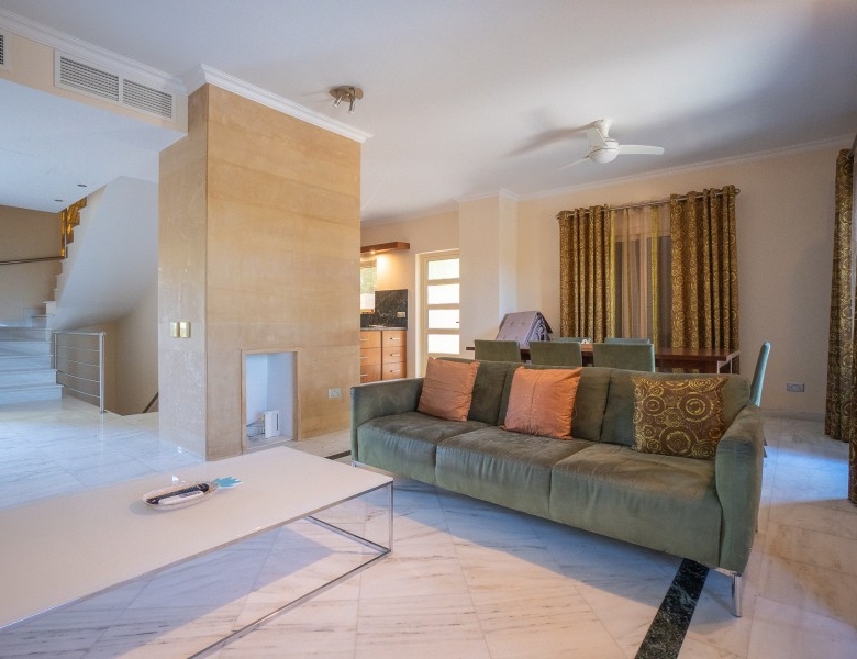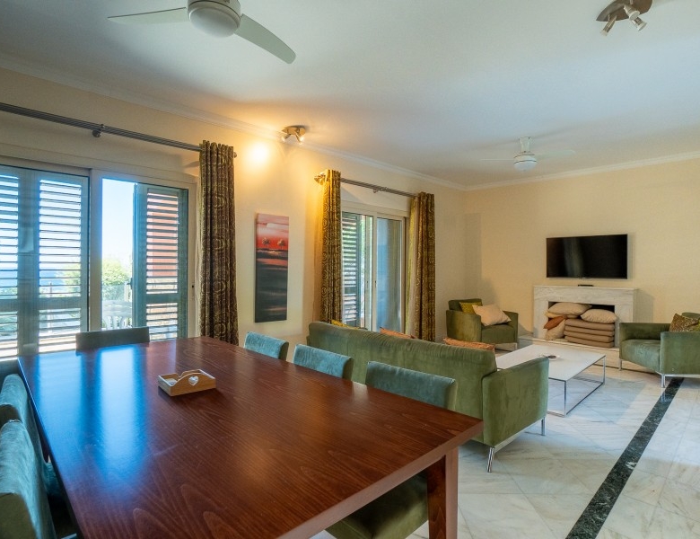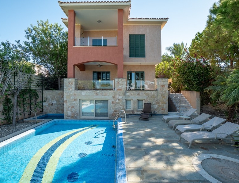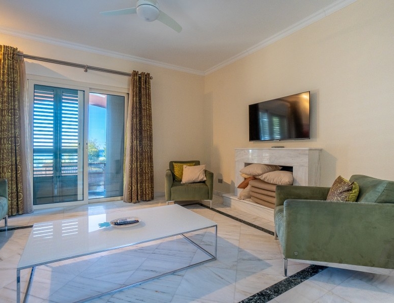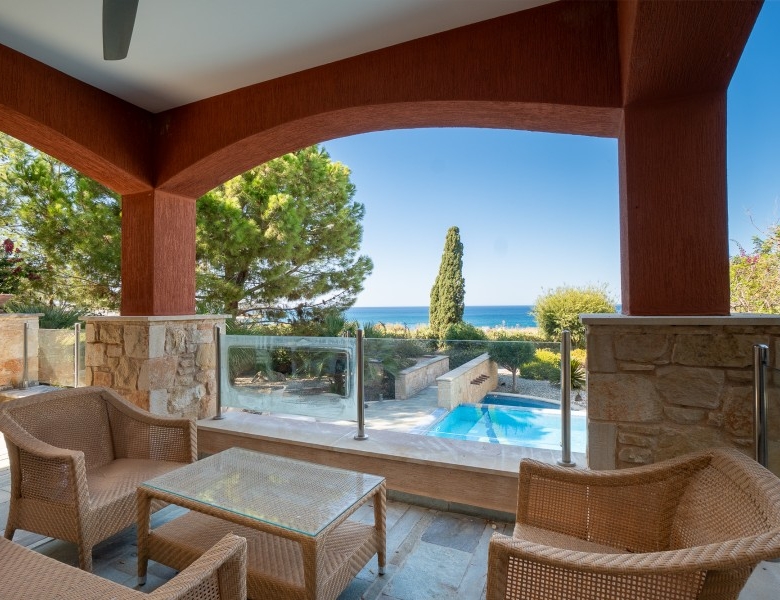 This prestigious villa is located on a huge individual plot, providing enough space for private recreation areas. In the garden there is an open-air terrace and an impressive endless pool, which, apparently, cascades into the blue waters. In a place where golden sunny salt sands are caressed by the soft rubbing waters of the Mediterranean, this property offers you a paradise.