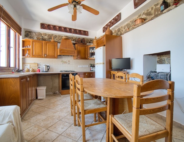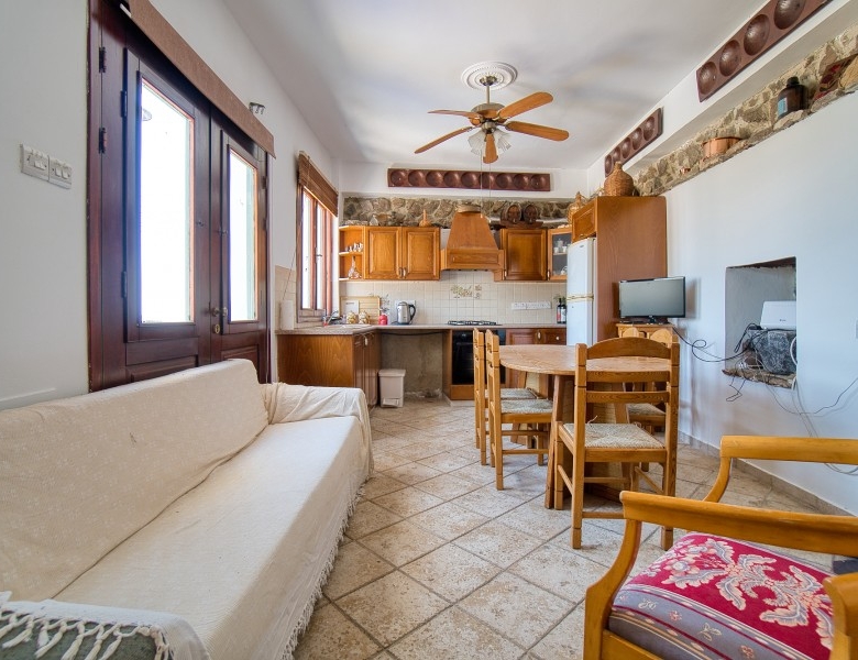 This village traditional house is located in the village of Nata, surrounded by vineyards and countryside and is within walking distance to the local supermarket and village tavern. The property is on a good sized plot and features a cozy open plan lounge with fireplace, dining &kitchen area, two good sized bedrooms upstairs and a family bathroom. A paved courtyard surrounds the property with the recent addition of iron gates and fencing and a large elevated garden area, and covered parking place. It’s ideal both as a permanent residence or holiday home and has full Title Deeds.