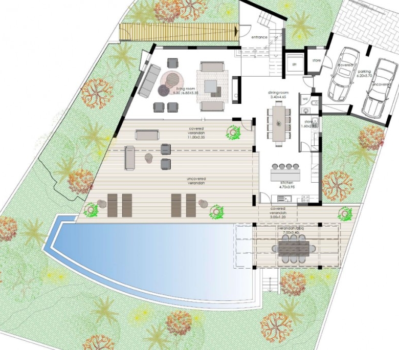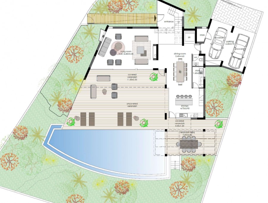 The design blends modern architecture with traditional Cypriot style and character, incorporating local stone, terracotta roof tiles and glass. These traditional materials have been combined with an ultra-modern edge, resulting in enduring designs that fully exploit their spectacular setting.