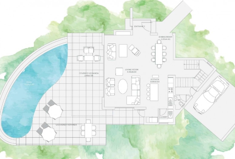 Each villa is airy and open in design, connecting the inside and outside through floor-to-ceiling windows. Villas have been carefully oriented to maximise views and all feature a private infinity pool.