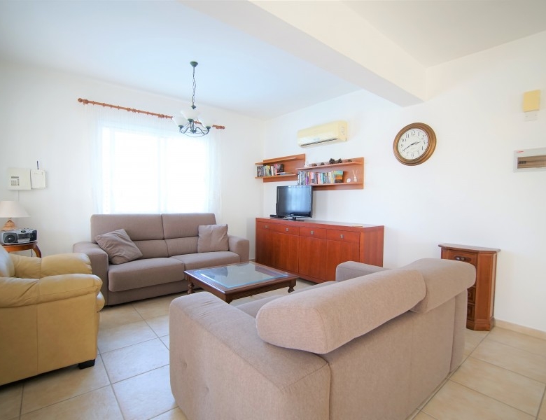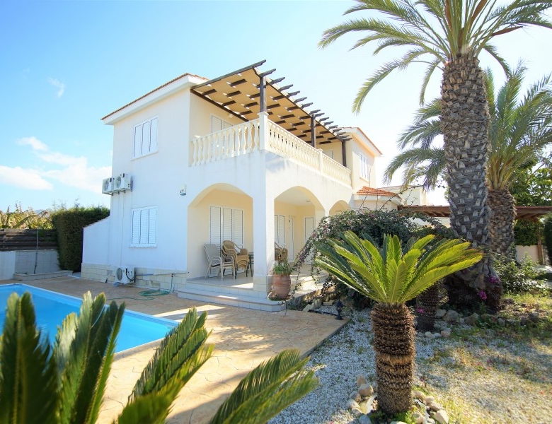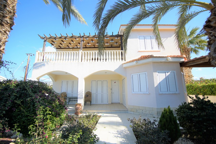 This beautiful three bedroom villa is situated within a few minutes’ walk from the famous sandy beaches of Coral Bay, shops, pubs, restaurants etc. Walking towards the entrance door of the property you are greeted by the beautiful mature gardens and driveway. Entering this home you will find the very spacious and bright living/dining area, the open plan kitchen and the guest cloakroom with a separate shower room. From the living/dining area you have access through sliding doors to the swimming pool area and landscaped gardens.. You will find the beautiful private swimming pool plenty of relaxation/sitting areas. Taking the staircase to the 1st floor you will find the family bathroom and the three double bedrooms. This home is ideal as a holiday retreat, as a permanent residency and as an investment, perfect for relaxing and enjoying one on of the best climates in the Mediterranean. The sandy beach is within walking distance where you can enjoy the crystal clear waters and the fresh fish from the nearby fish restaurant.
