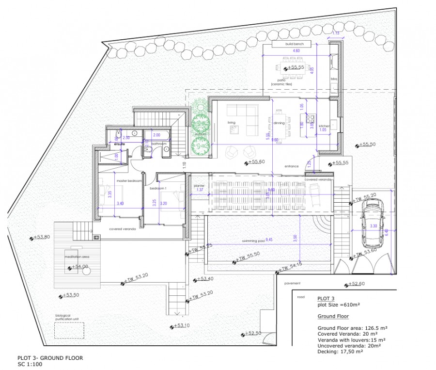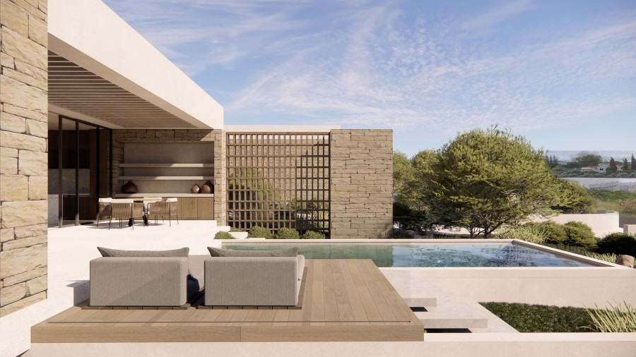 An exquisite development located in the highly-coveted upscale area of Sea Caves in Paphos. The development is within a 10-minute walk from the captivating Edro III Shipwreck, Oniro By the Sea, and the natural sea caves. It is also a 10-minute drive to the border of the Akamas Nature Reserve, a UNESCO-protected haven, and one of the last remaining natural areas on the island. Designed for discerning clients seeking luxurious high-end villas, each residence at Davanti Mare features a seamless indoor-outdoor flow and high-end specifications. Residents can fully embrace the Cyprus climate and the area’s natural beauty, enjoying ample outdoor space, complete privacy, and breathtaking views. Additionally, there is convenient access to local infrastructure, including schools, shops, bars, and hotels. Optional furniture package. This villa has a roof terrace of 180 covered square meters.