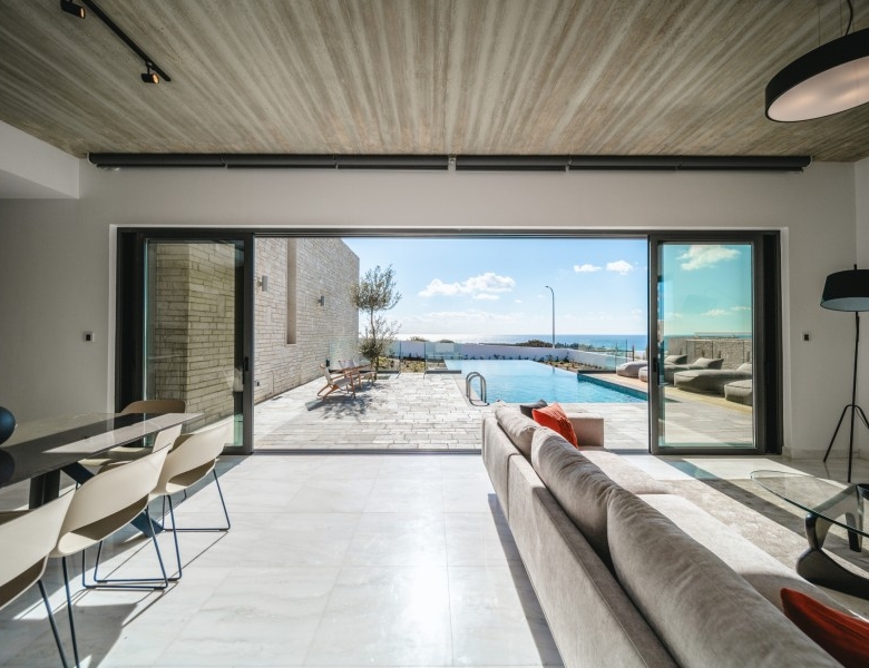 Is a prestigious and award-winning development of luxury villas located in the serene and unspoiled region of Sea Caves, Paphos. It is only a short distance from the Akamas National Park and is surrounded by olive trees and natural beauty. With breathtaking views of the Mediterranean, this development is situated in one of the most picturesque areas of Paphos. The development is just a 10-minute drive away from the charming St George fishing harbour and its stunning beach cove. It is also just a 5-minute drive from the famous Corel Bay Beach, which has been awarded a blue flag, as well as from the small town’s bars, restaurants, and shops. Just as pearls are highly valued for their beauty and rarity, this development, with its proximity to renowned landmarks and breathtaking views, is truly a pearl of the Mediterranean.